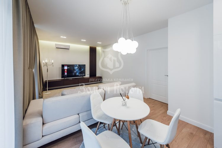 Продається 2-кімнатна квартира на вулиці Набережно-Рибальській, 9. Двостороння оселя з новим дизайнерським ремонтом, загальною площею 73 м2. Зручне функціональне планування і великим балконом-терасою, простора кухня-вітальня і спальня з панорамними вікнами, функціональний санвузол з підігрівом підлоги. Кондиціонування — спліт система.