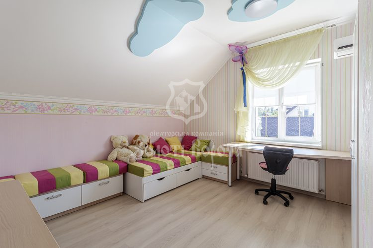 Продається будинок в містечку Глеваха, на вулиці Космонавтів, 32. Прекрасний 2-поверховий дім з і гаражем. На першому поверсі — кухня поєднана з вітальнею, одна спальня і гостьовий санвузол, котельня, вихід в гараж через будинок. На другому поверсі — три спальні, гардеробна, велика ванна кімната з душовою та джакузі.
