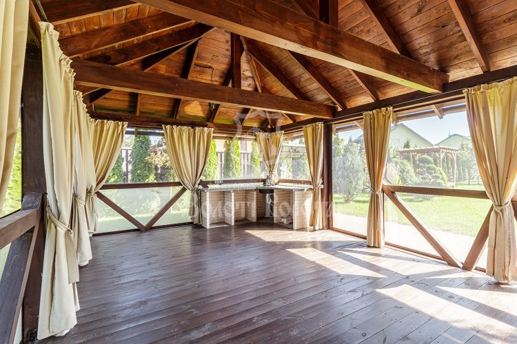 Прекрасний ландшафтний дизайн з рідкими деревами, грамотно проведений автополив з окремою скважиною. На території ділянки побудована зона мангала з пічкою та коптильнею, велика альтанка з мінікухнею. Також є гостьовий будинок з банею на дровах і басейном.