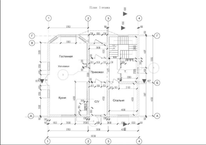 На першому рівні передбачено простору вітальню, кухню, спальню, санвузол і господарські приміщення. Другий мансардний поверх включає три спальні, два санвузли й додаткову багатофункціональну кімнату.