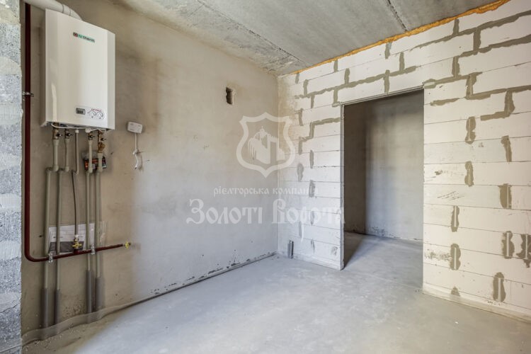 Квартира укомплектована якісною будівельною основою: лазерною стяжкою підлоги, двоконтурним газовим котлом для автономного опалення, штукатуркою несучих стін, двокамерними склопакетами (3 скла) та надійними вхідними дверима з МДФ накладками. Також встановлено лічильники на воду, газ та електроенергію.