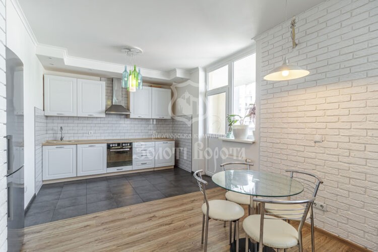 Простір квартири вражає своєю продуманістю: кімнати оздоблені якісним ламінатом, тоді як коридор, санвузли та кухня викладені стильною плиткою.