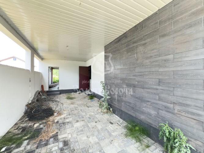 Будинок з продуманим плануванням, що включає три спальні, два санвузли, простору кухню-вітальню з виходом на терасу, криту зону барбекю та стоянку для авто.