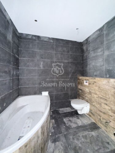 У санвузлах покладена плитка, є кутова ванна, інсталяція та біде (потрібно тільки встановити). У кухні-вітальні на підлозі плитка, робочий фартух кухні також викладений плиткою.