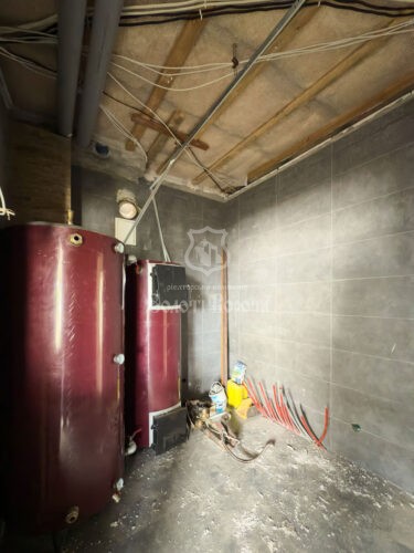 Вже виконано ремонт: стіни оздоблені декоративною штукатуркою, на підлозі — плитка з підігрівом, а стеля підготовлена під натяжну (натяжна стеля є в наявності).