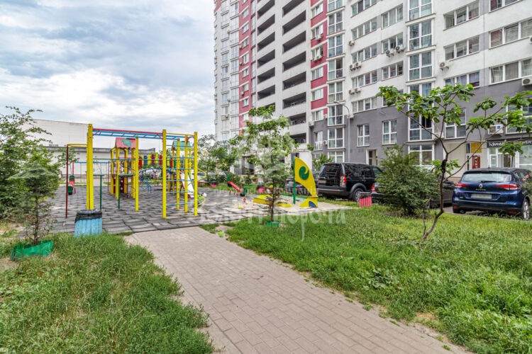 Прибудинкова територія є великою та доглянутою, вільною від транзитного руху, що робить її безпечною. Двір обладнаний сучасними дитячими та дорослими майданчиками, а також пропонує достатньо паркувальних місць.
