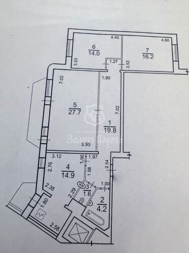 Квартира двостороння, з вікнами, що виходять у тихий двір і на озера. Планування передбачає кухню-їдальню площею 14,9 м2, вітальню — 27,7 м2, дві спальні — 14 м2 і 16,2 м2, просторий коридор — 19,8 м2, окремий санвузол, два балкони — один з кухні, другий великий із вітальні.