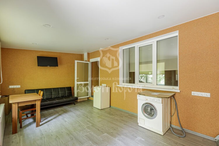 Це приміщення на першому поверсі цегляного будинку має узаконену прибудову з виходом прямо з вулиці, що відкриває можливості як для комфортного проживання, так і для комерційного використання.