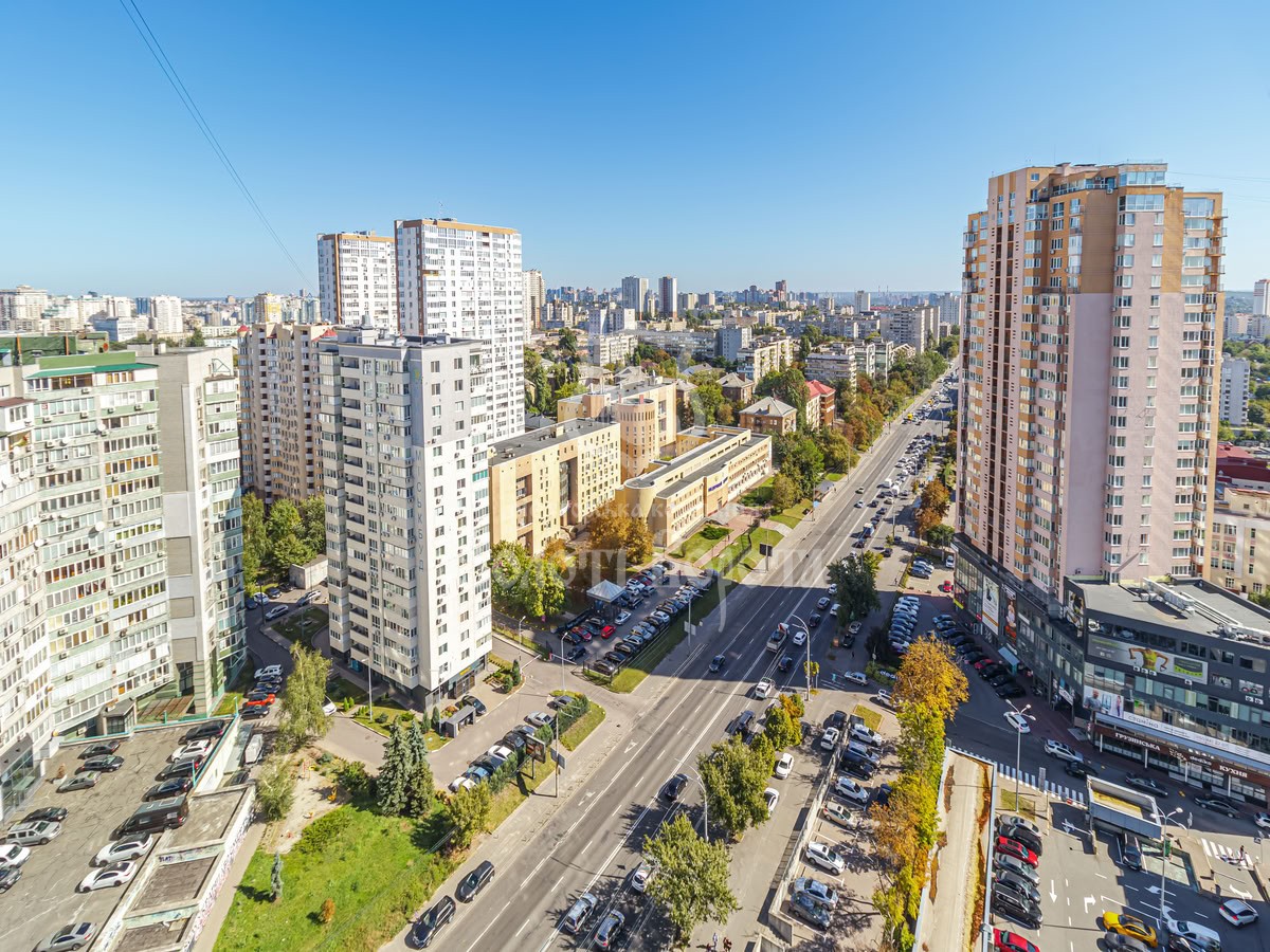 Представляємо простору 2-кімнатну квартиру площею 86,7 м2, розташовану на 21 поверсі 25-поверхового цегляного будинку бізнес-класу за адресою: вулиця Лобановського, 4а. З вікон відкривається неймовірний краєвид на місто.