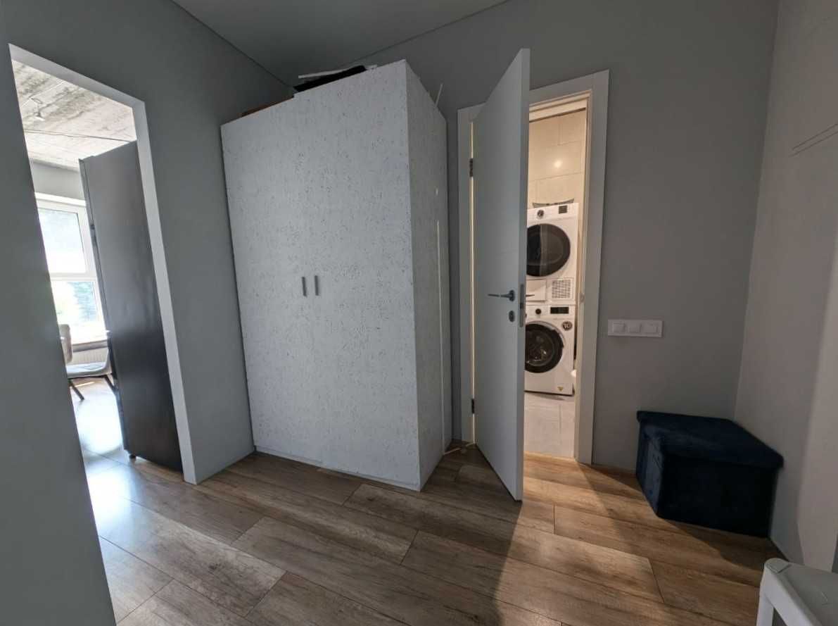 Ремонт майже завершений, частково мебльована, з сучасною великою технікою. Вікна виходять у тихий двір і на парк Феофанія — ідеальний вид для відпочинку після насиченого дня.