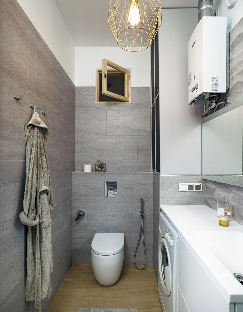 Ванна кімната обладнана газовою колонкою, кутовою гідромасажною ванною із скляною шторкою, сучасною душовою системою, пральною машиною з сушкою Samsung, гігієнічним душем і рушникосушкою.