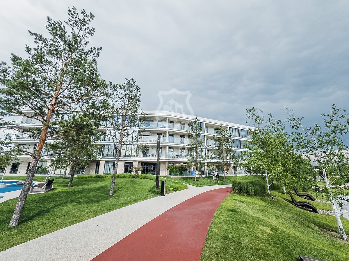 Помешкання знаходиться на комфортному 2-му поверсі. Висока якість будівництва: енергоефективні склопакети з напиленням, червона керамічна цегла, керамограніті плити «Ariostea», пожежостійка мінеральна вата. Перевагами квартири в комплексі є низька забудова, близькість до природи та води, стильна та ергономічна архітектура, квартира з просторими терасами та панорамним склінням.