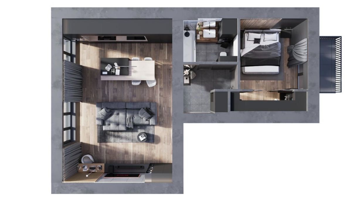 Передбачена гардеробна. Балкон відкритий, з нього відкривається неймовірний панорамний вид на місто.
