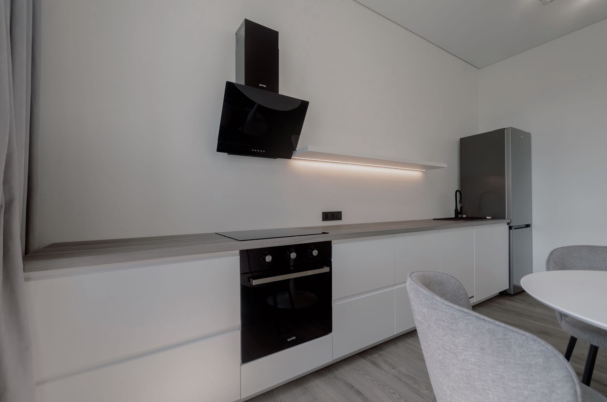 Квартира після якісного дизайнерського ремонту. Інтер’єр виконаний у нейтральних відтінках, що створюють відчуття простору й гармонії.