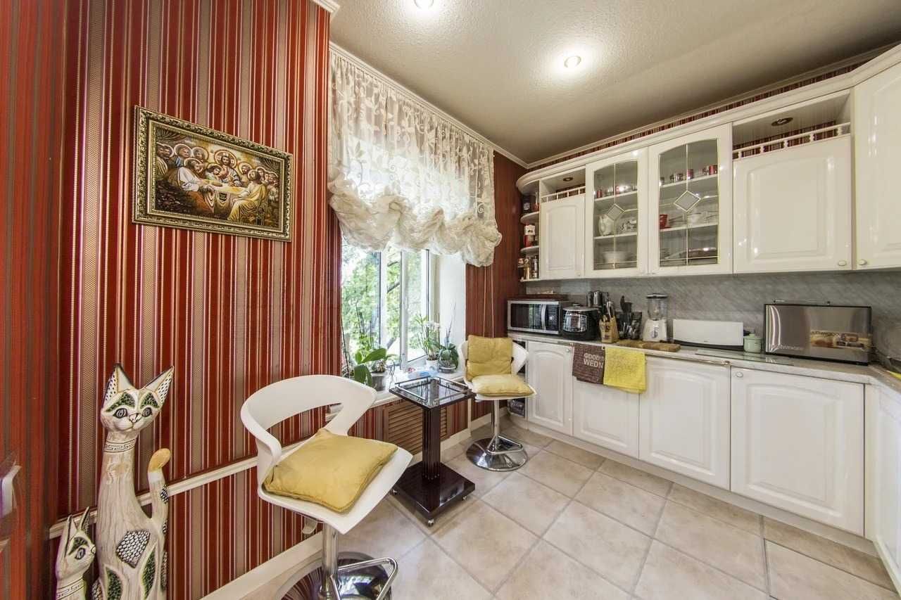 Квартира світла й тиха, зі стильними італійськими меблями та якісною технікою. Тут передбачено все для комфортного життя: два засклені балкони з видом на парк, натуральний паркет, кахельна підлога, сучасні вікна, газова колонка, суміщений санвузол.