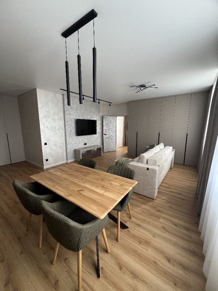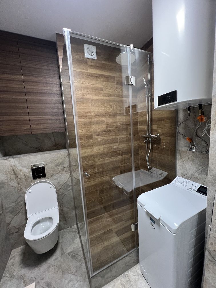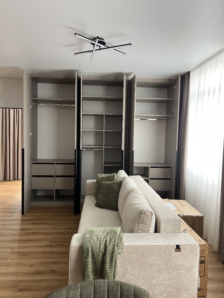 У житлі виконано якісний євроремонт: на підлозі — ламінат, стіни оздоблені декоративними матеріалами. Інтер’єр витриманий у сучасному стилі, меблі виготовлені на замовлення, що забезпечує максимальну функціональність і естетику.