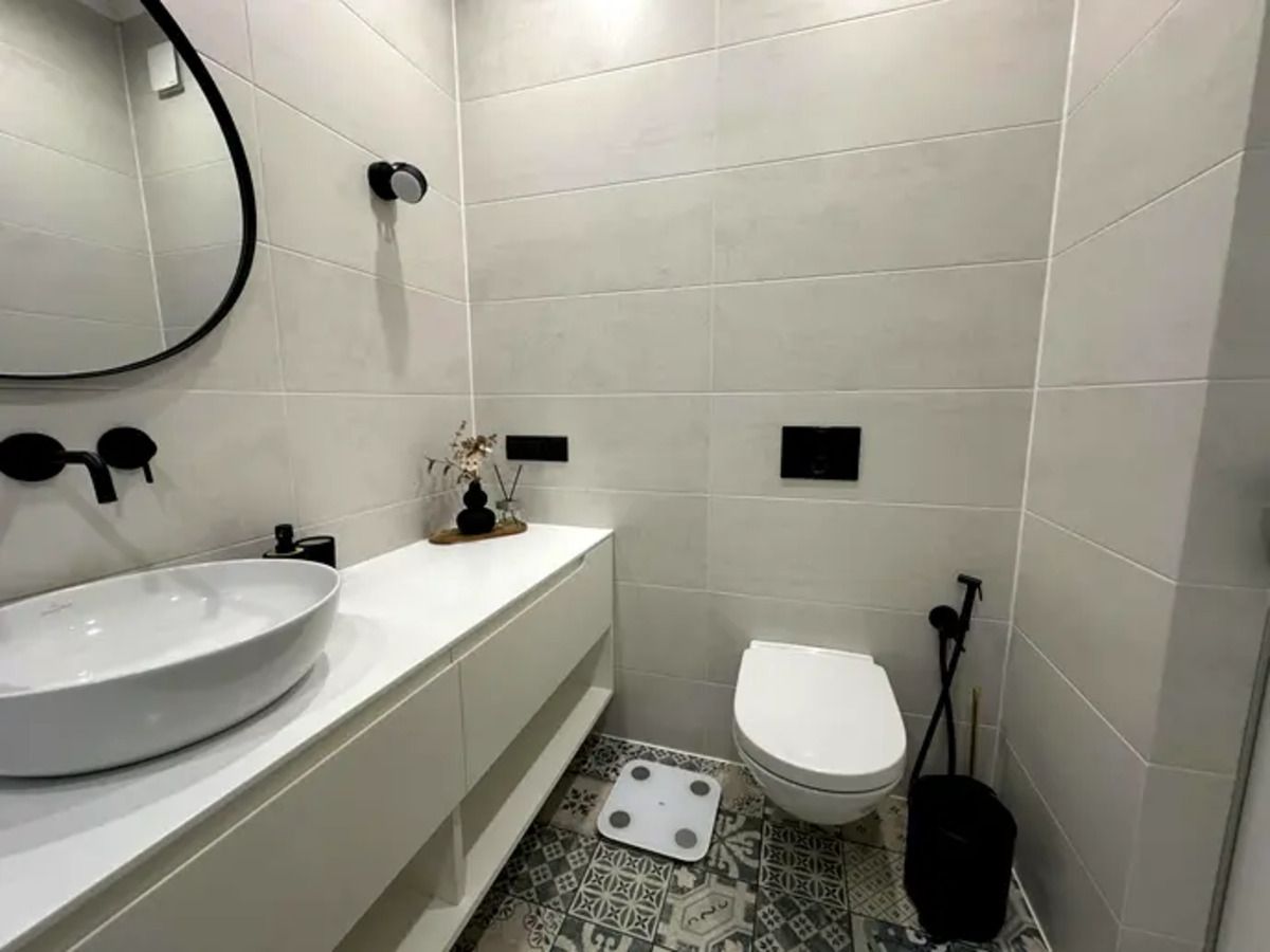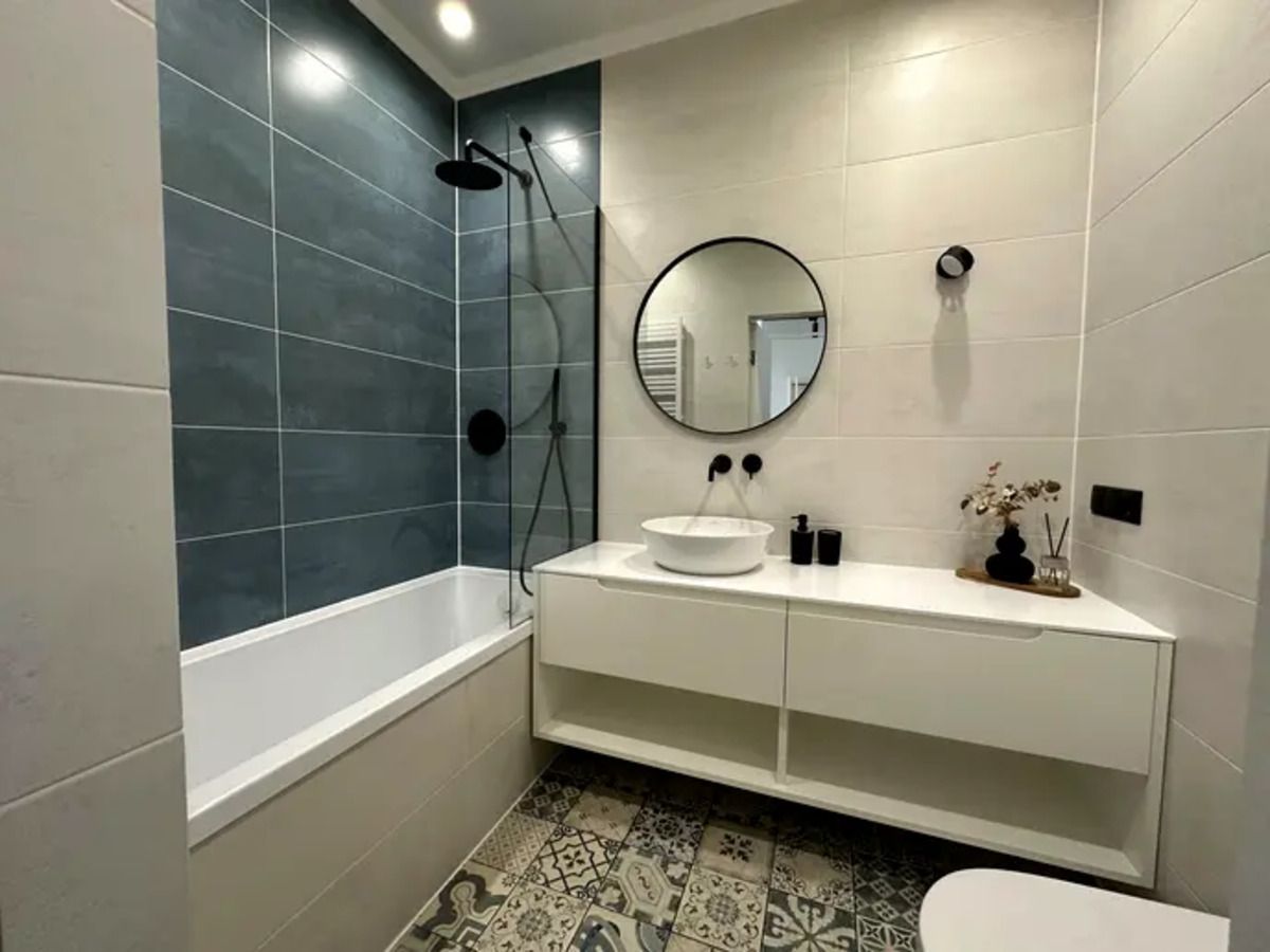 Встановлені санфаянс Villeroy&Boch та сантехніка Paffoni, а також прихований монтаж дверей та шаф, стільниці зі штучного каменю. Особливою перевагою є наявність підігріву підлоги у всіх зонах.