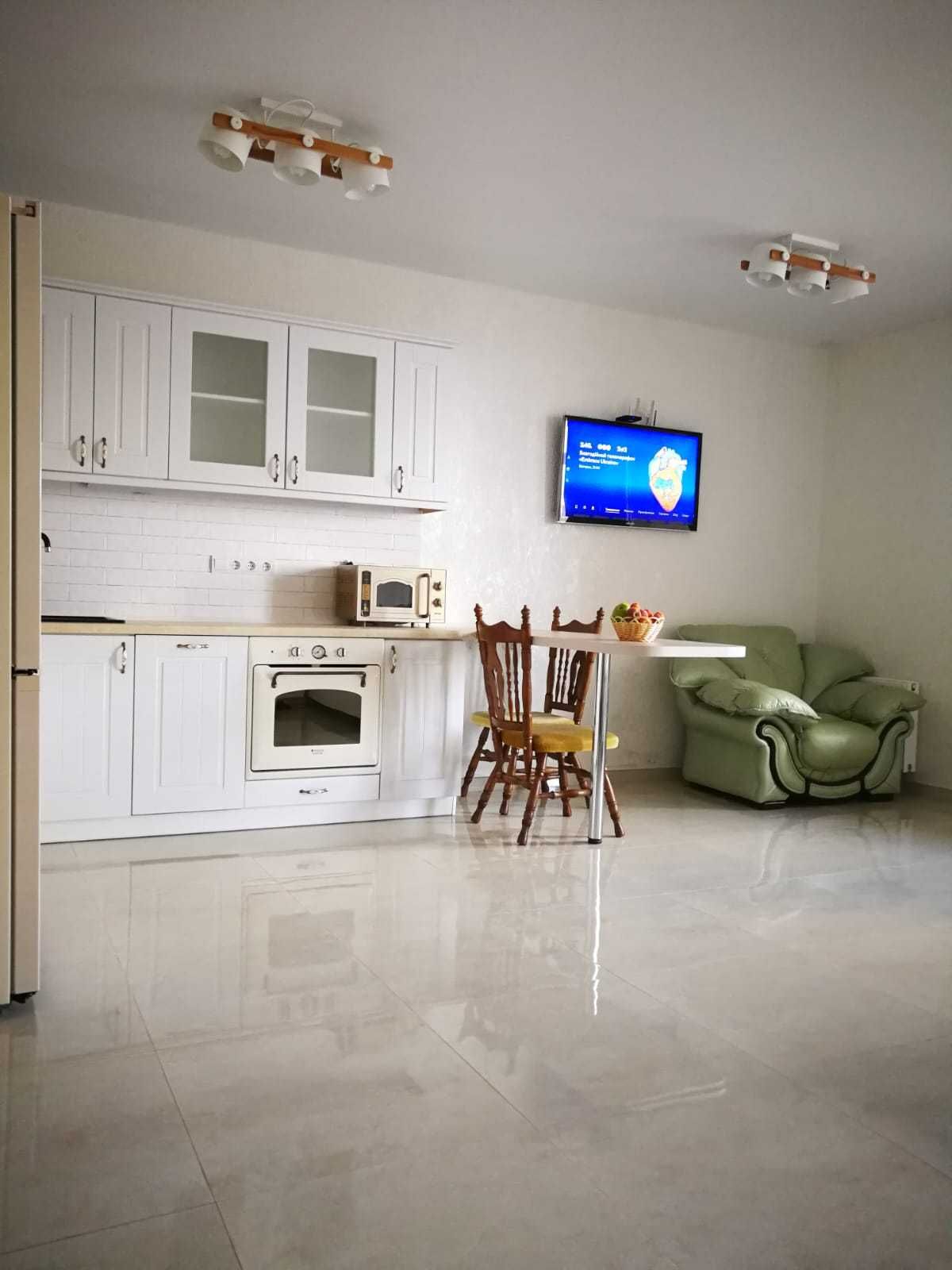 Пропонується до продажу простора однокімнатна квартира з великою кухнею-студією у Святошинському районі Києва, в сучасному житловому комплексі «Грюнвальд».