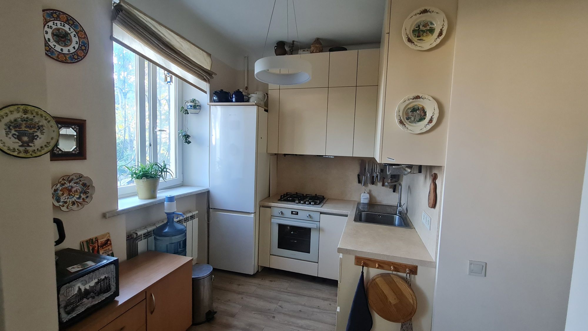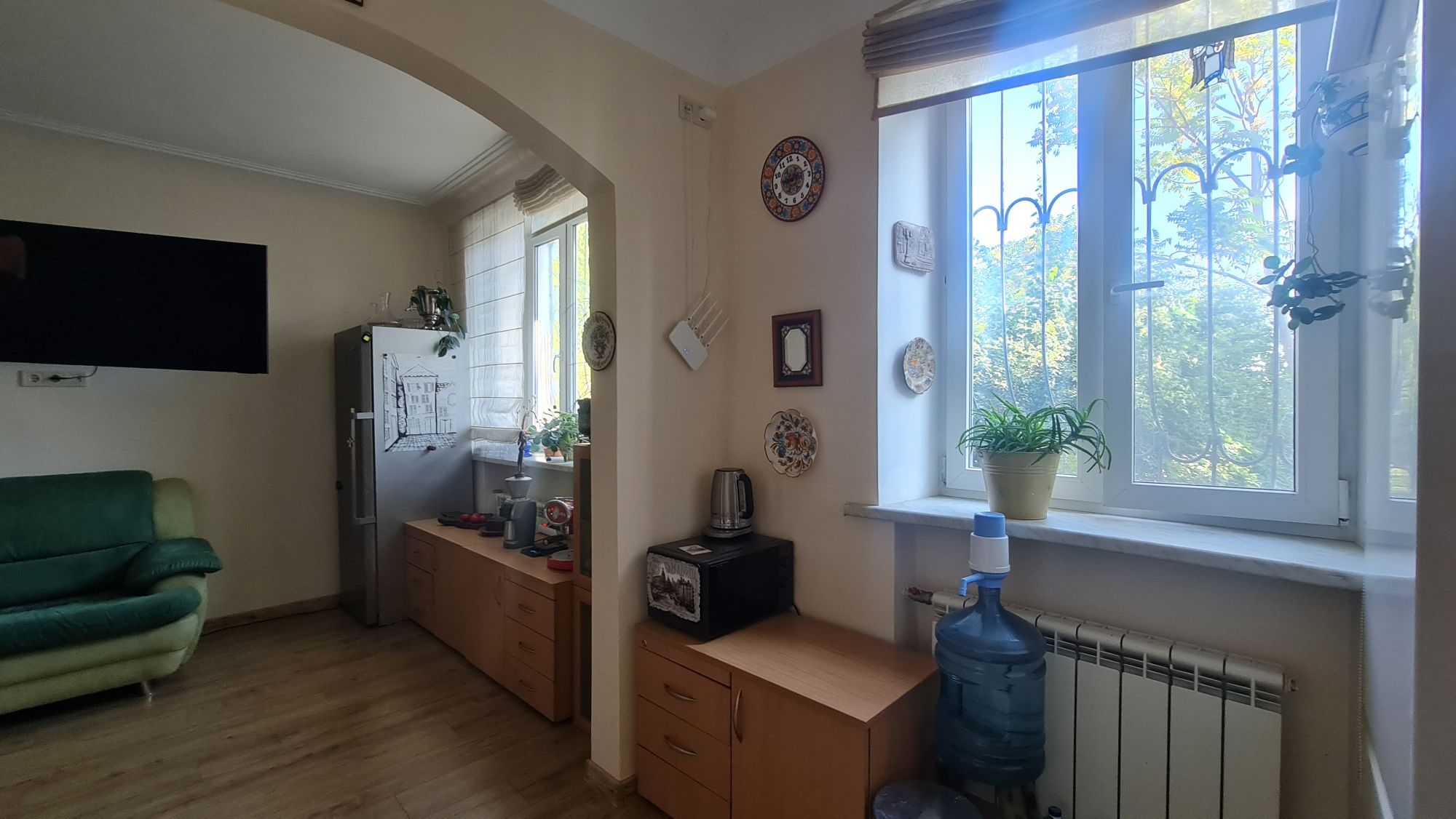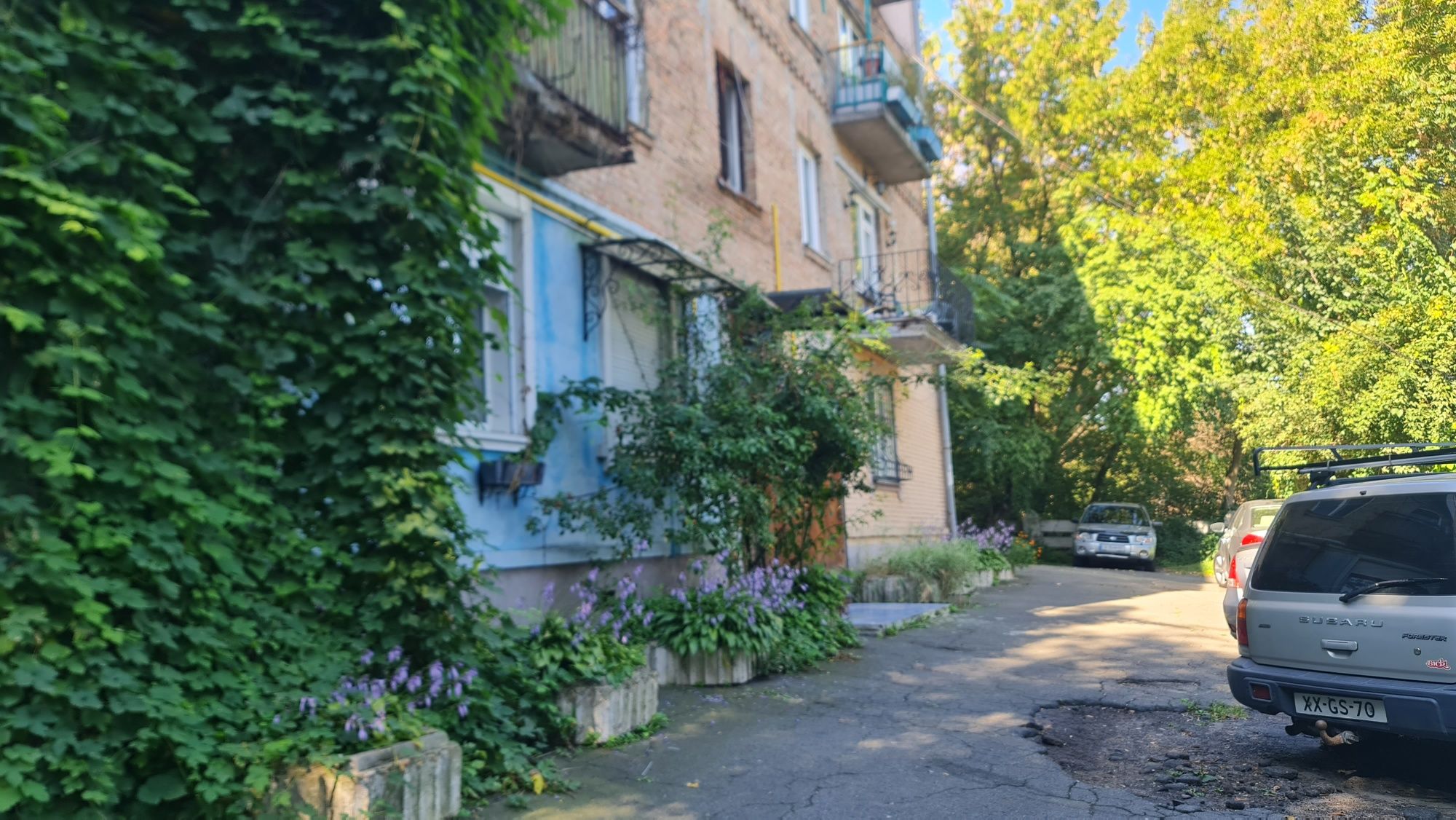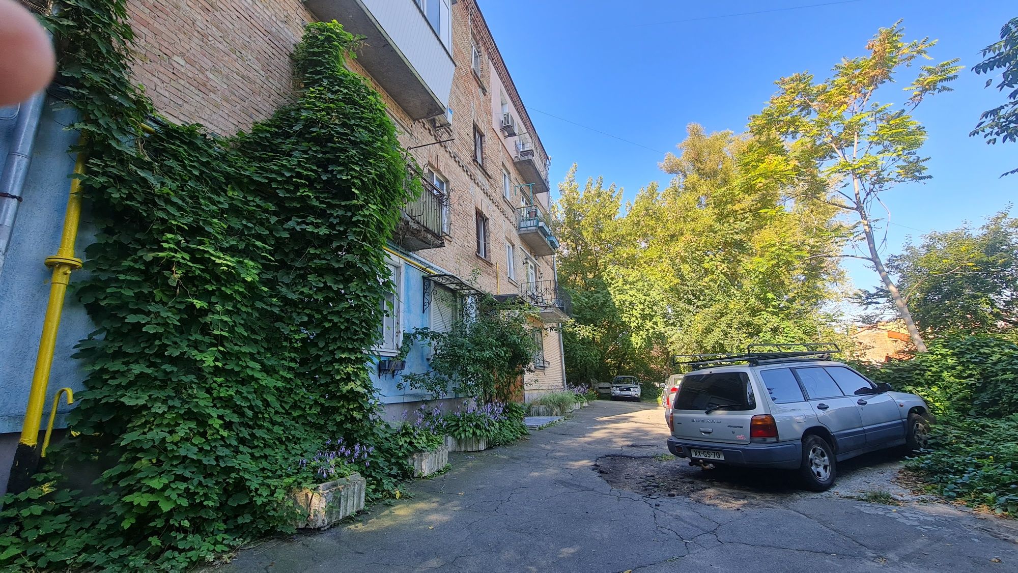 Пропонується до продажу унікальна двокімнатна оселя, розташована на першому поверсі чотириповерхового будинку на провулку Покровському, 8 — у самому серці історичного Подолу.