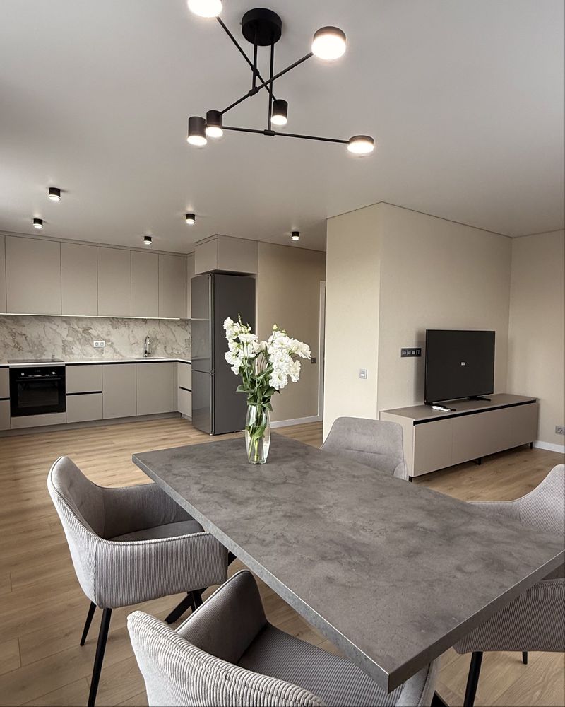Простора кухня-студія площею майже 30 м2 ідеально підходить для прийому гостей та сімейних зустрічей. У квартирі встановлено броньовані двері ««Megapolis»», є тепла підлога та звукоізоляція.
