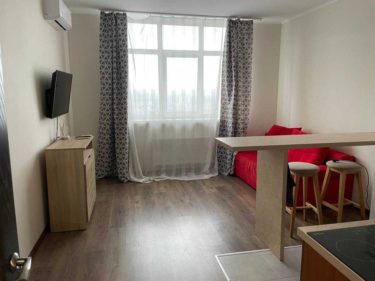 Продається 1-кімнатна оселя площею 25 м2 з кухнею 5 м2 на 23 поверсі 24-поверхового будинку, розташованого на вулиці Сім’ї Кульженків, 33 — у самому серці Мінського масиву. Житло з сучасним ремонтом, меблями та технікою — готове до заселення без додаткових витрат.
