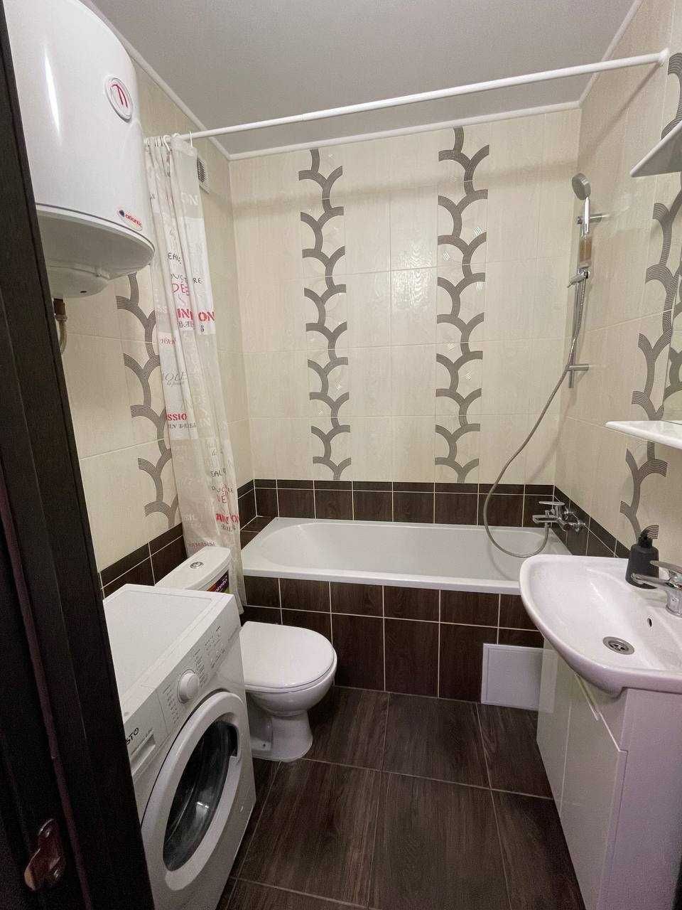 Інтер’єр світлий, продуманий до дрібниць: зручна кухня з варильною поверхнею та барною стійкою, двокамерний холодильник, пральна машина-автомат, бойлер, кондиціонер, телевізор.