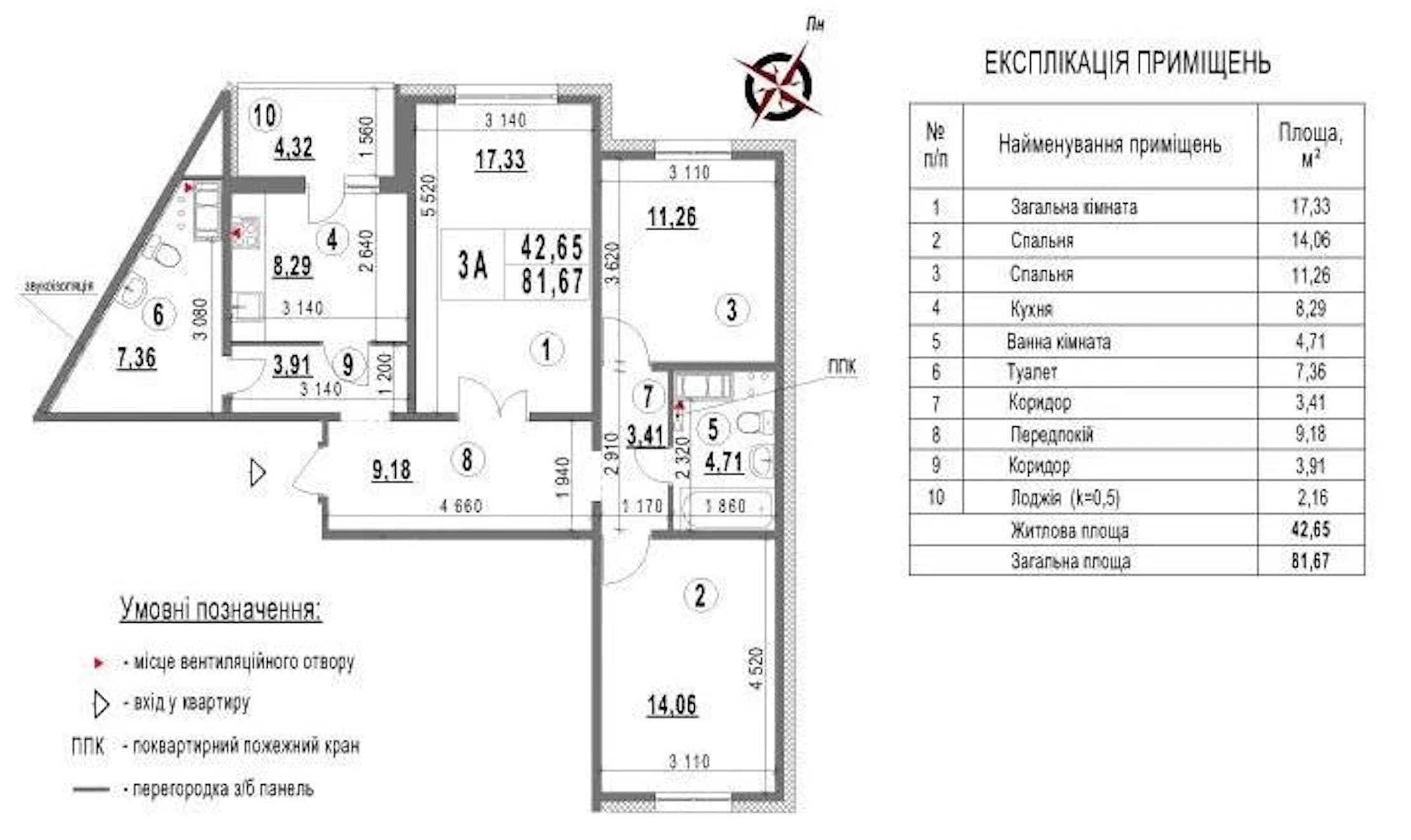 Простір продуманий: три окремі кімнати, два санвузли, світла кухня з виходом на засклений балкон. Кімнати розташовані двосторонньо, що забезпечує провітрювання та природне освітлення.