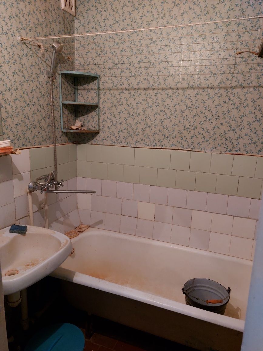Квартира з функціональним плануванням, санвузол із ванною, на підлозі — паркет і ламінат, стіни оздоблені шпалерами, встановлені дерев’яні вікна.