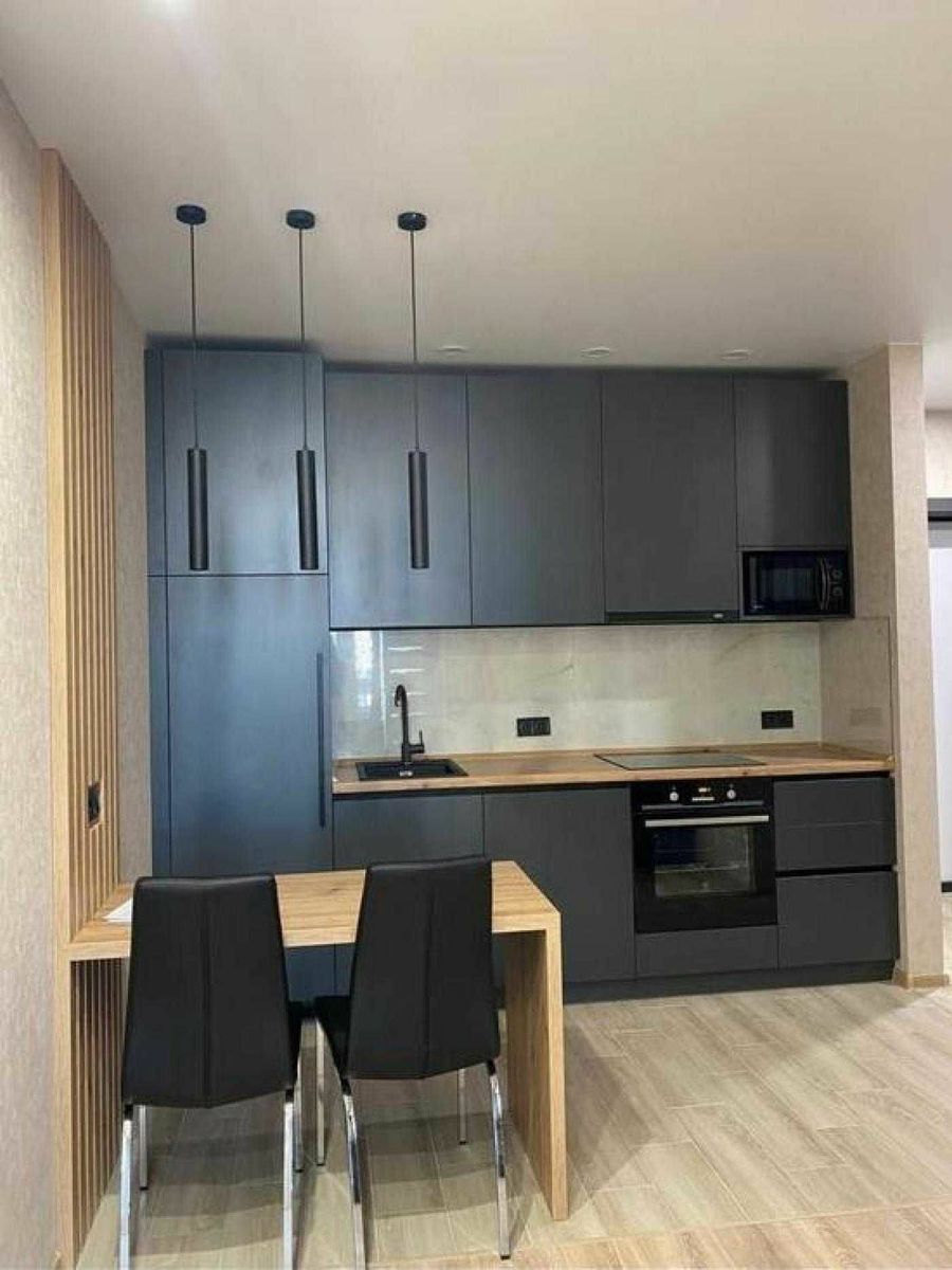 Житло має стильний євроремонт та зручне планування, яке включає кухню-студію та окрему спальню.