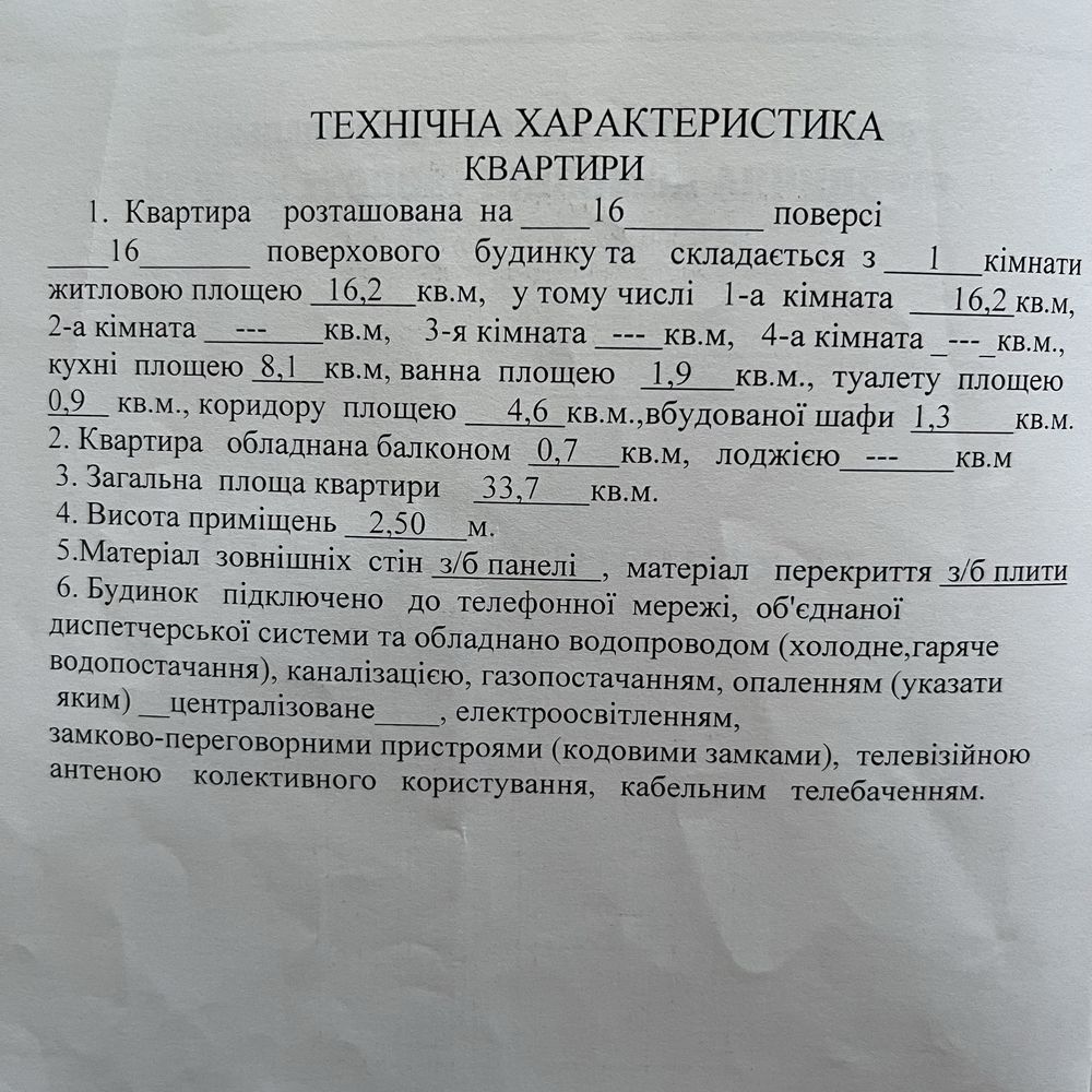 Пропонується до продажу житло у Дніпровському районі столиці — вул. Райдужна, 17а. Помешкання розташоване на 16 поверсі 16-поверхового будинку, не кутове, з комфортним мікрокліматом.