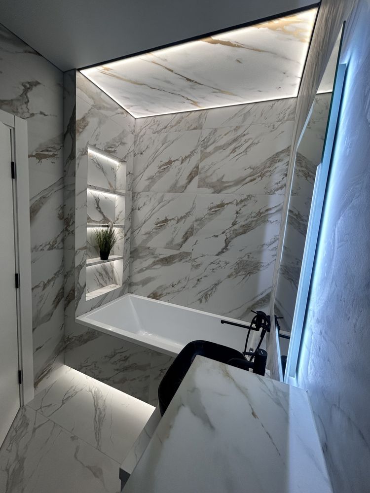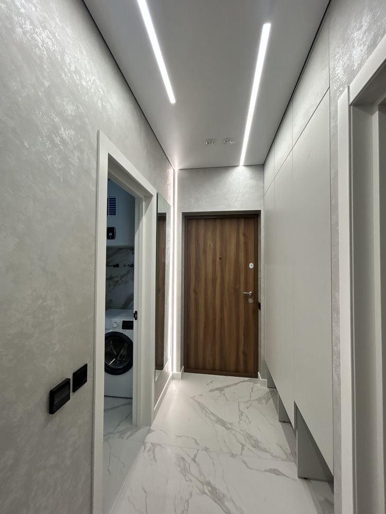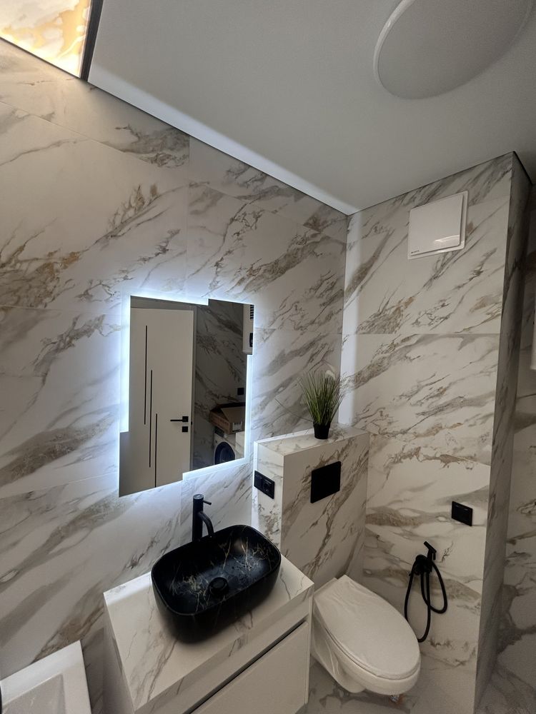 Стіни оздоблені декоративною штукатуркою, а у ванній кімнаті встановлено теплу підлогу та кілька зон освітлення, що створюють затишну атмосферу.