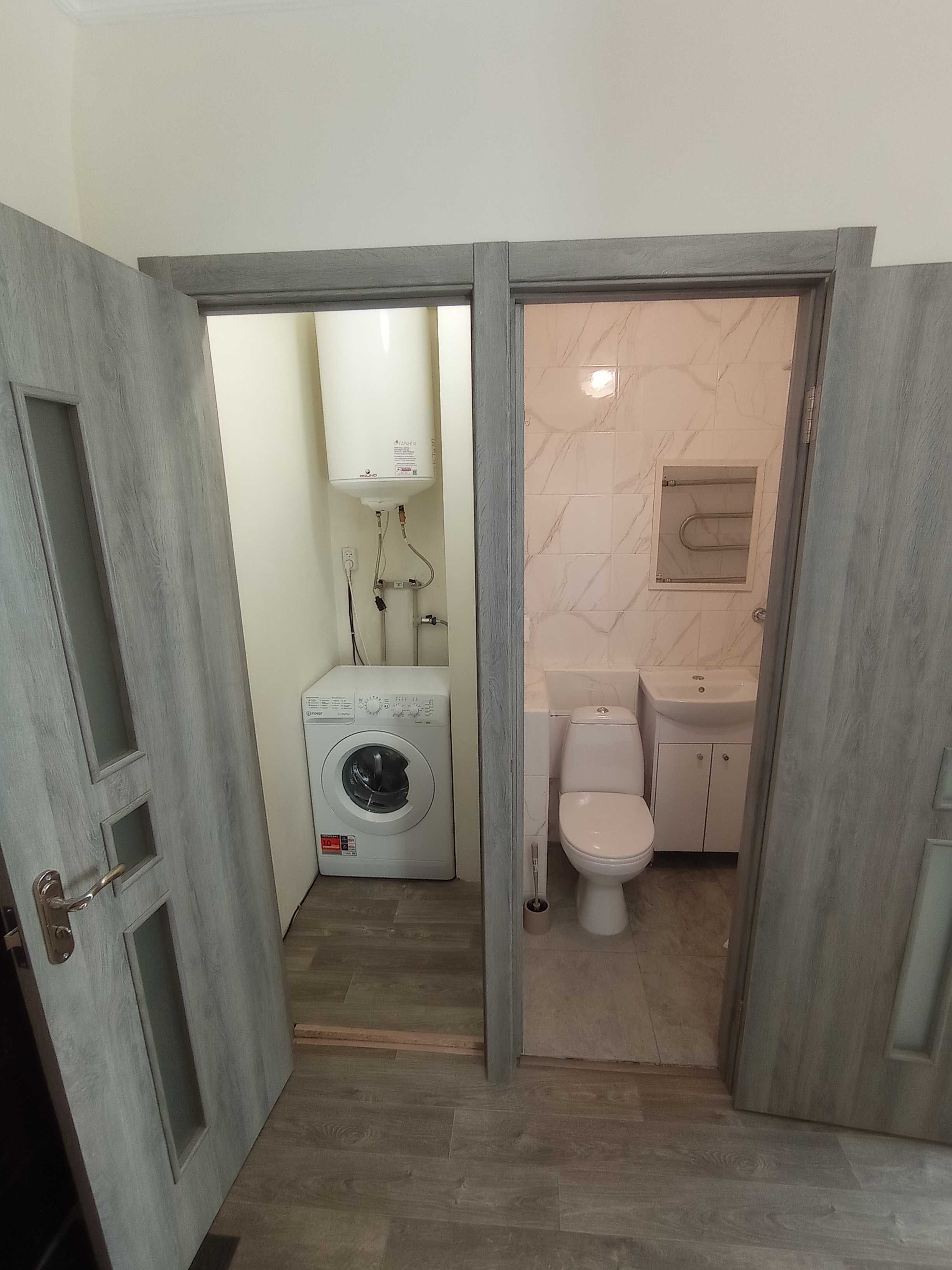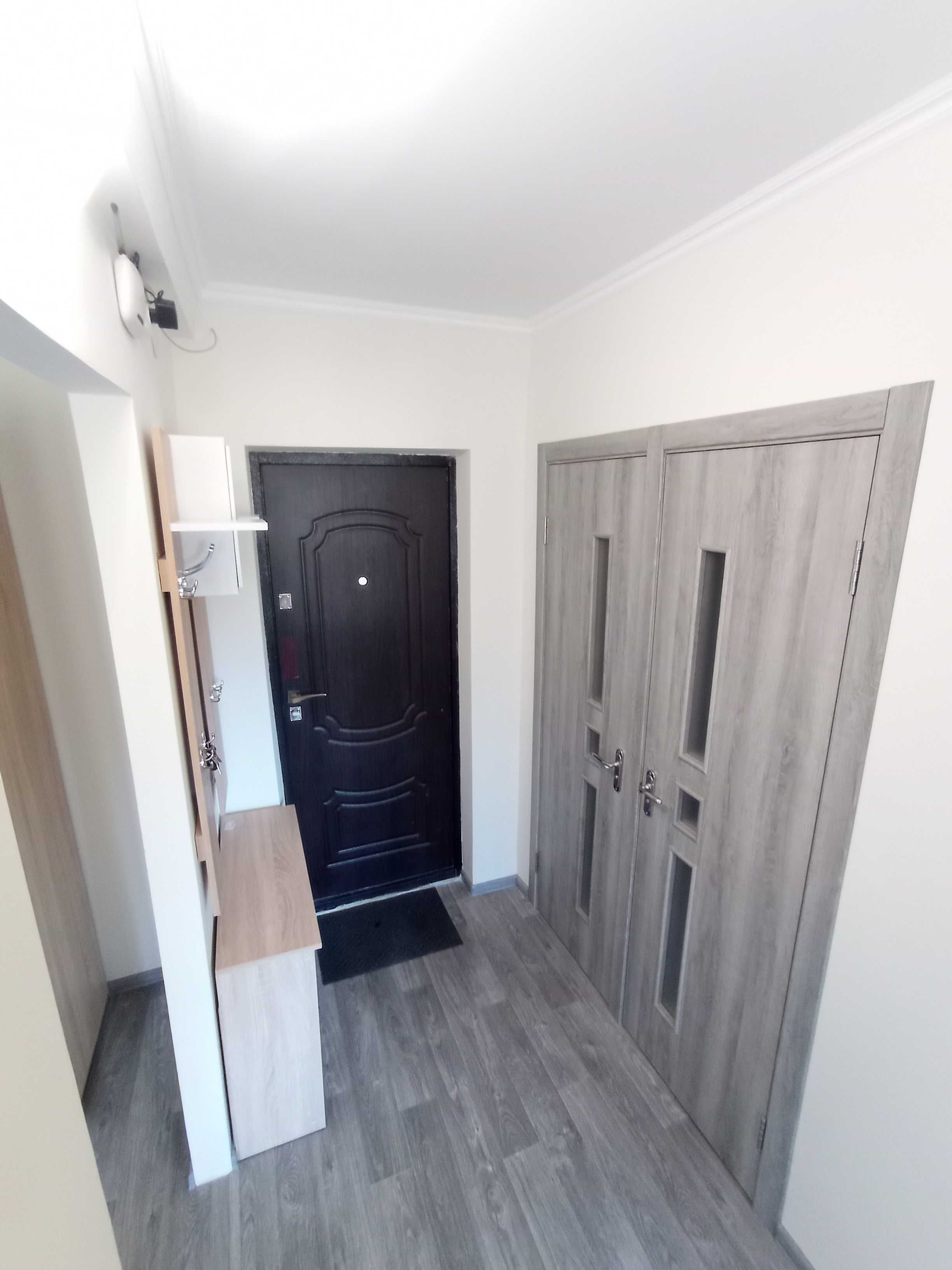 Інтер’єр світлий, стіни поштукатурені та пофарбовані, без шпалер. У кімнаті — велике двоспальне ліжко з якісним матрацом, шафа-купе 2,7 м, нова кухня, сучасний санвузол із сидячою ванною, нова сантехніка, бойлер, пральна машина, холодильник, газова плита.