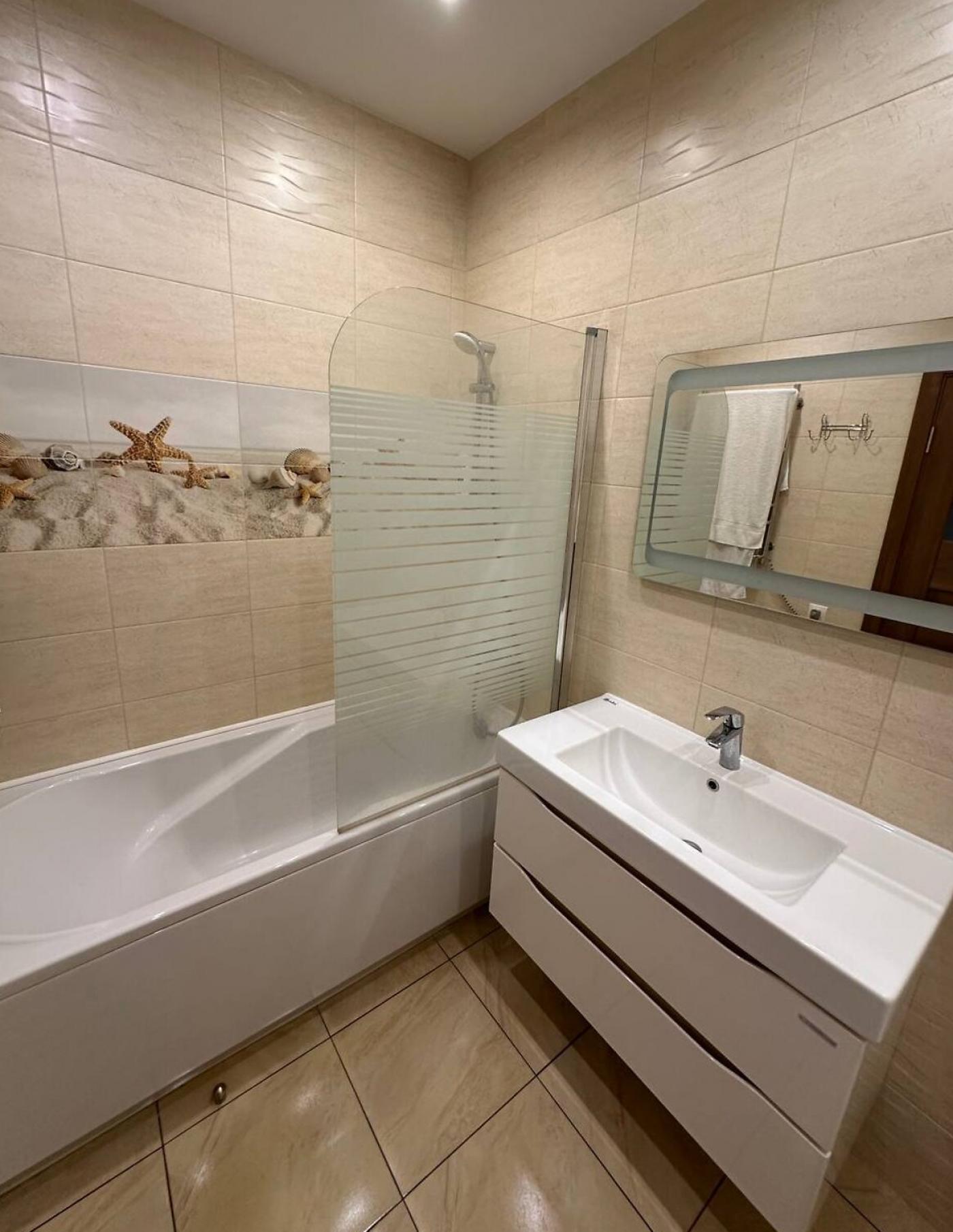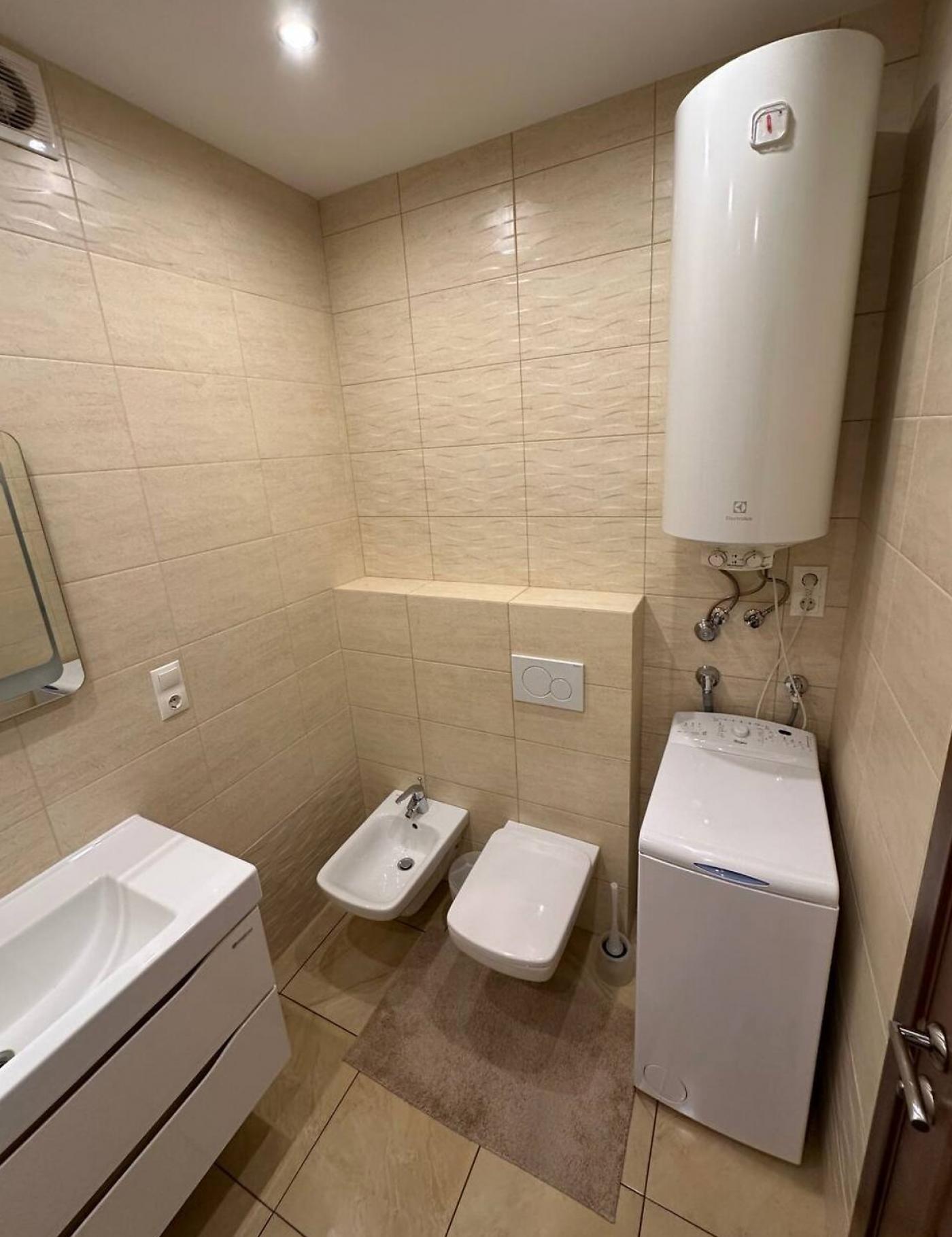 Встановлено холодильник, варильну поверхню, духову шафу, телевізор, пральну машину, бойлер, кондиціонер — усе необхідне для комфортного проживання.