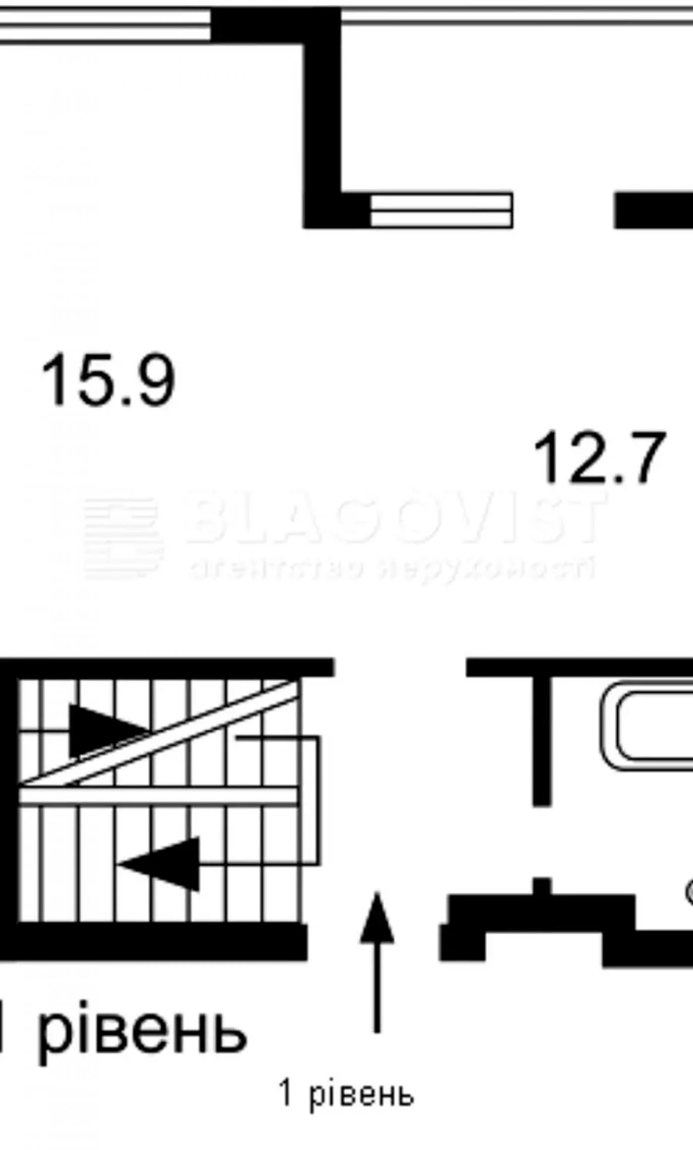 Перший поверх — це простора кухня, вітальня, відкритий гардероб, санвузол і балкон. Другий — дві спальні (одна з можливістю облаштування дитячої), гардеробна, другий санвузол і окрема зона-укриття з диваном, що має щонайменше три стіни — додатковий простір для безпеки або відпочинку.