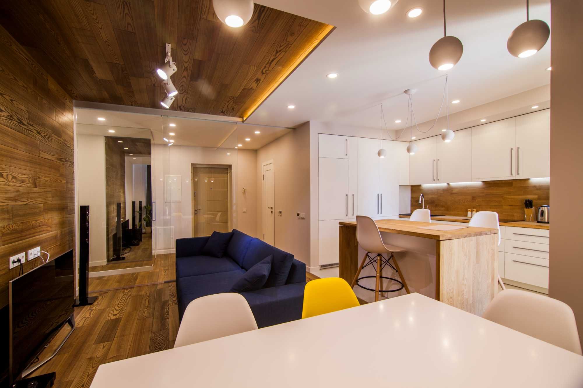 Планування продумане раціонально: простора кухня-вітальня площею 25 м2, дві окремі спальні кімнати (15 і 13 м2), два повноцінні санвузли — з ванною та душовою кабіною, а також приховані унітази. Є лоджія з видом на сосновий ліс і французький балкон у спальні, що дарують неповторну атмосферу спокою.