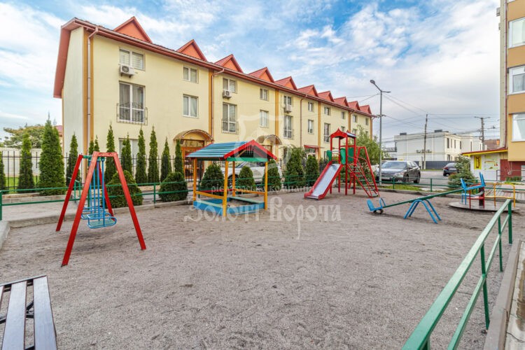 Житловий комплекс розташований у затишному зеленому дворі з відеонаглядом, дитячим майданчиком, зонами відпочинку, салоном краси, кафе, рестораном, парковкою і зручною зупинкою громадського транспорту.
