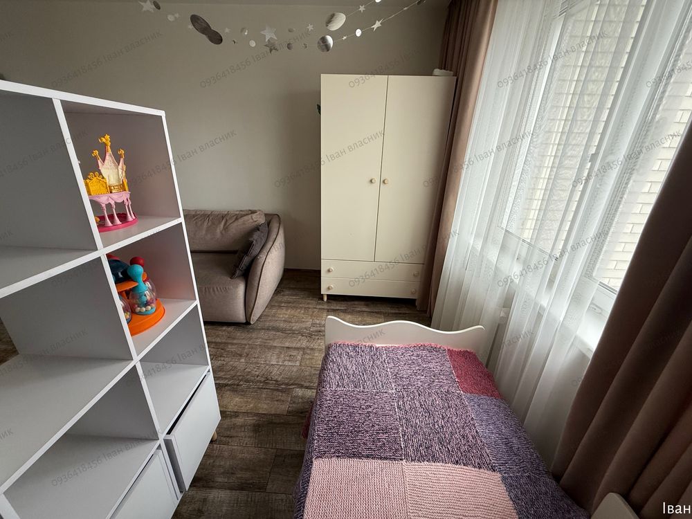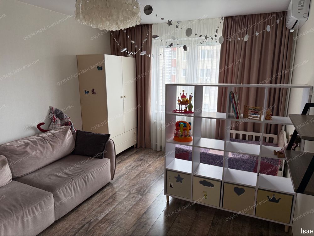 Планування дуже зручне: кімнати роздільні, а одна з них додатково зонована під вітальню та дитячу — ідеально для сім’ї з дітьми. Є великий засклений балкон з відкритою частиною.
