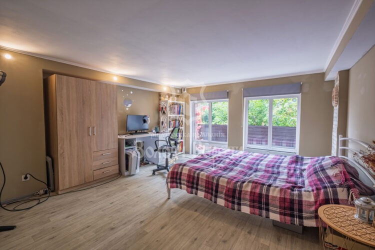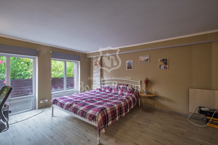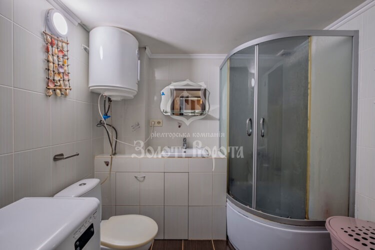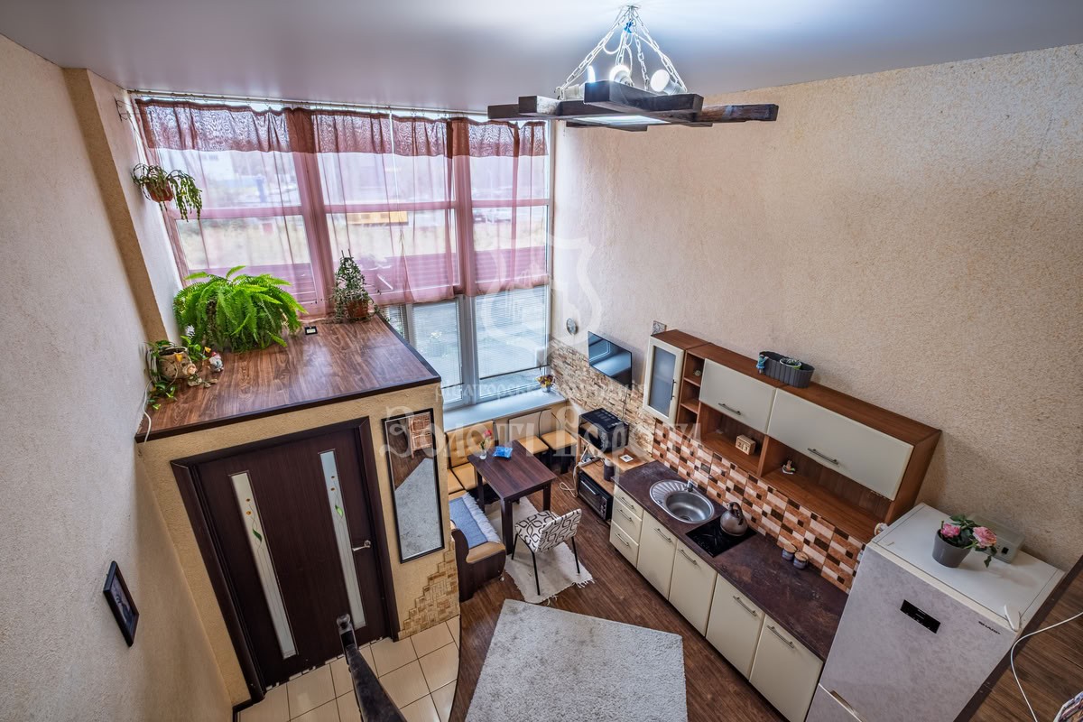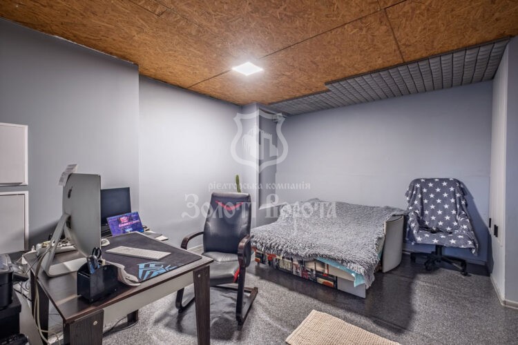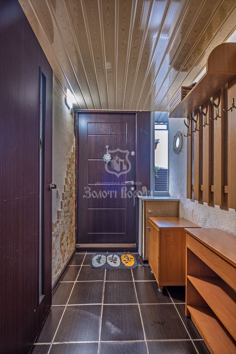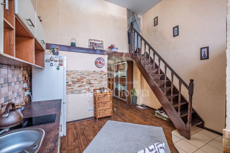 Житло розташоване у двох рівнях і має окремий вхід прямо з двору. На першому рівні знаходиться вітальня, величезна кухня площею 42 м2, окрема кімната 16 м2, санвузол та комора.