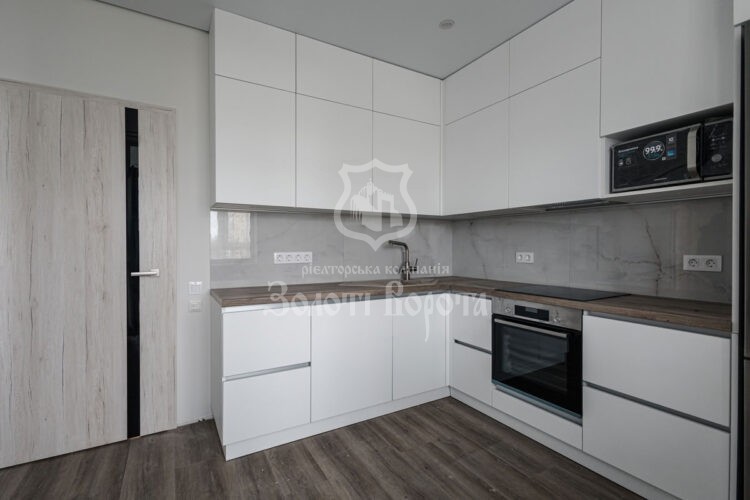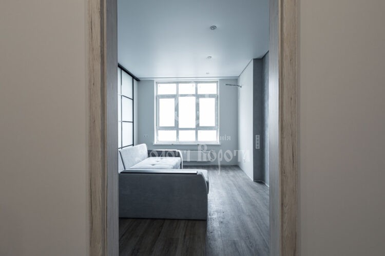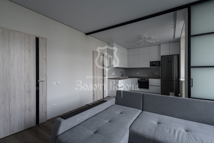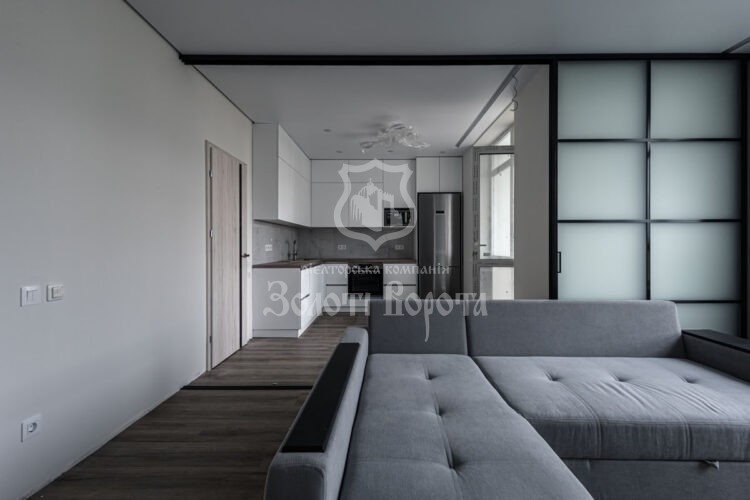 Простір організовано з урахуванням комфорту: кухня студійного типу зонована розсувними дверима, дві окремі кімнати, два санвузли, тепла підлога, засклений балкон. Квартира абсолютно нова — тут ще ніхто не проживав.