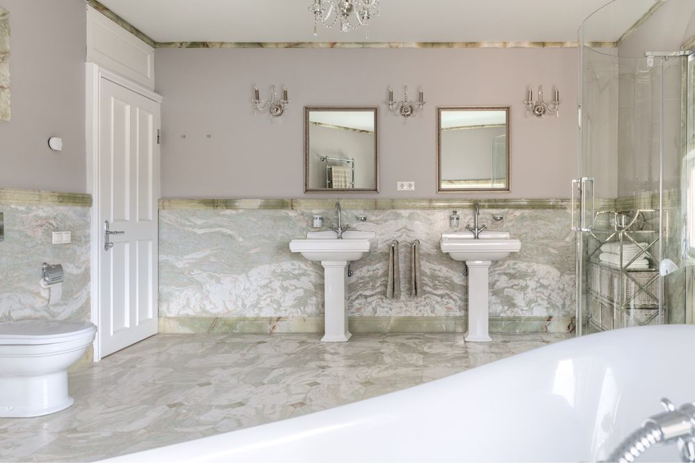 Інтер’єр продуманий до дрібниць: три спальні, три санвузли, оздоблені натуральним оніксом і мармуром, кухня з робочою зоною біля вікна, елегантна вітальня з бібліотекою та вбудованим кінотеатром, гостьова кімната, гардероб, пральня, технічна кімната — усе створено для бездоганного щоденного комфорту.