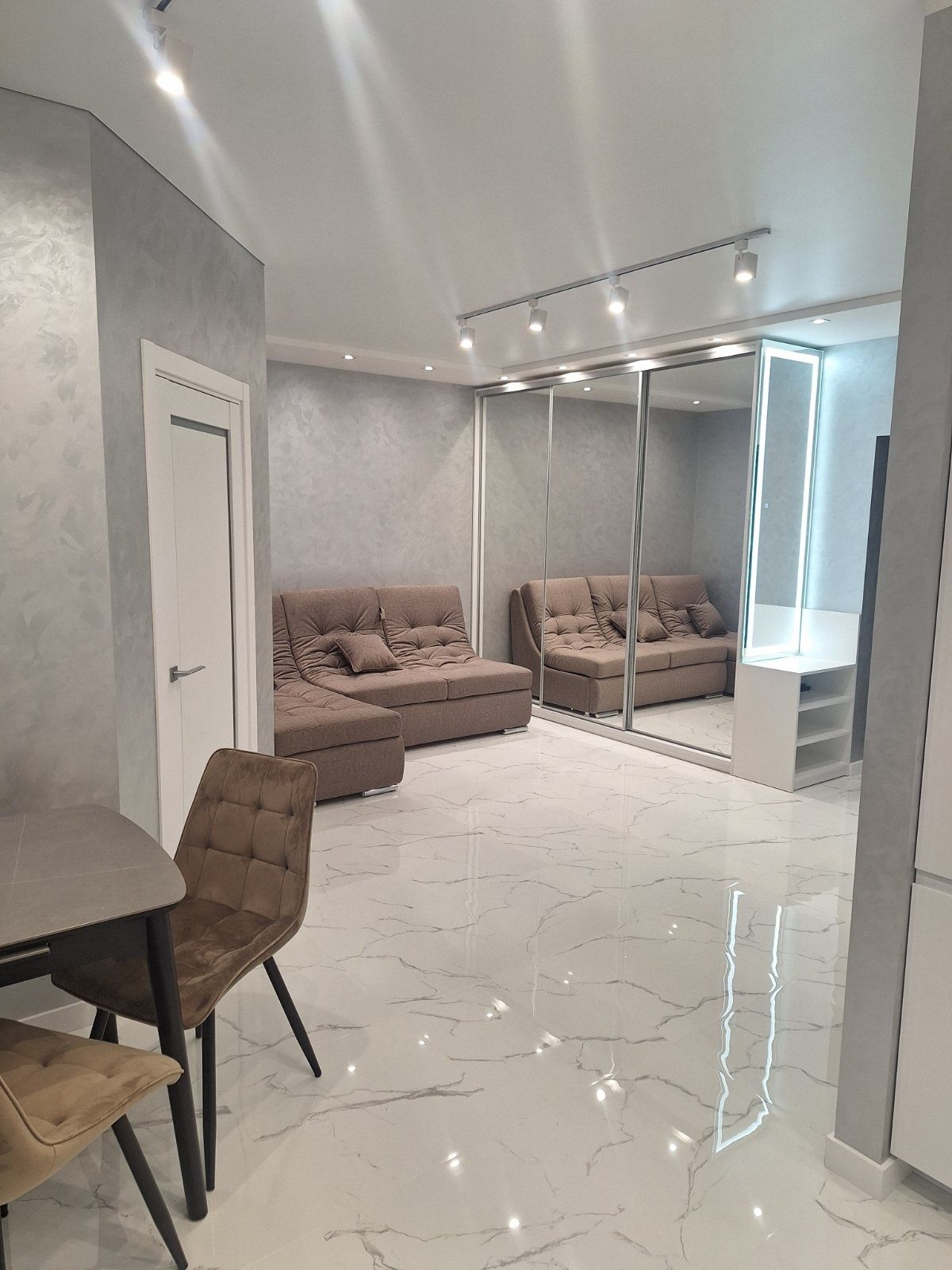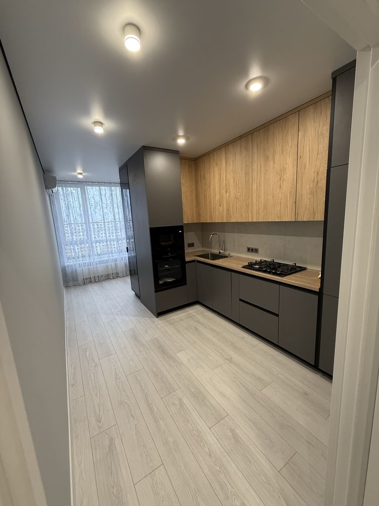 Пропонується до продажу стильна, простора однокімнатна квартира площею 46 м² з великою кухнею 15 м², розташована на 7-му поверсі 16-поверхового монолітно-каркасного будинку, зведеного у 2019 році та повністю заселеного. Адреса — Харківське шосе, 190, Нова Дарниця.