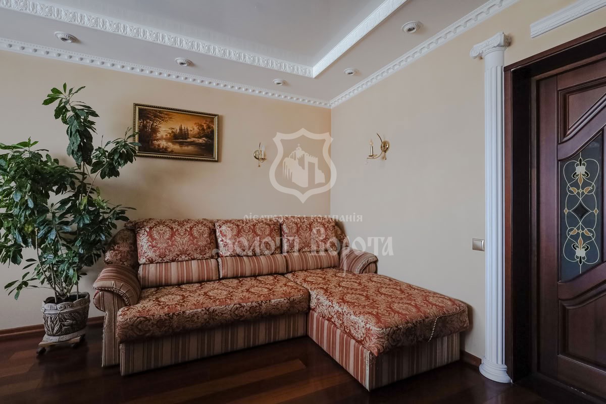 Квартира виставляється на ринку нерухомості у першому продажу — чудова простора з якісним ремонтом у класичному стилі для родини з дітьми, онуками, своєю сімейною історією, площею 142 м², має чотири великі кімнати: вітальня 25,4 м², спальня 16,4, спальня 20,6, спальня 21,5 м². За потреби одну зі спалень можливо переробити в особистий тренажерний зал, кабінет, бібліотеку або кінотеатр.