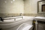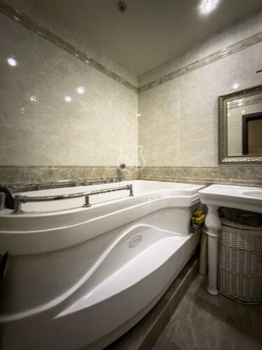 Передбачений камін — для нього зроблене спеціальне підключення. У квартирі два санвузли — гостьовий з гідромасажною душовою кабіною і головна ванна кімната з ванною «Jacuzzi», яка має режими «душ-шарко», гідромасаж, хвильовий масаж, підсвітка, музика, іонізація повітря, загалом така модель коштує 2,5 тис. дол. США.