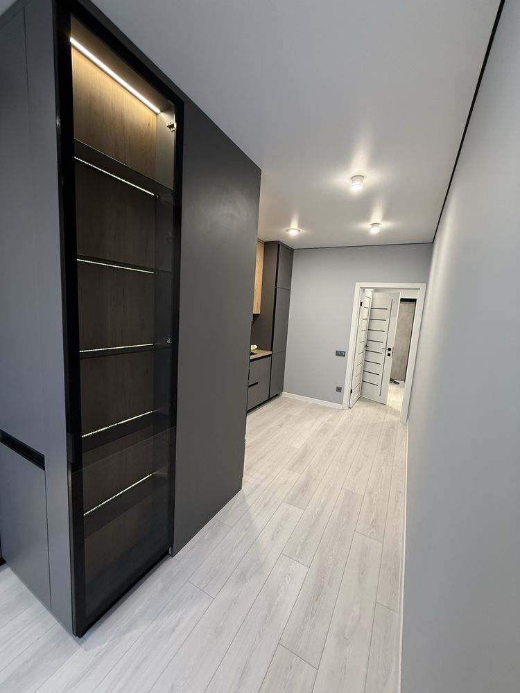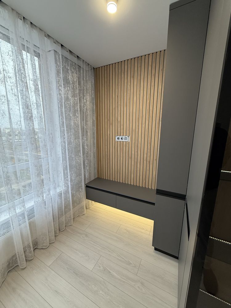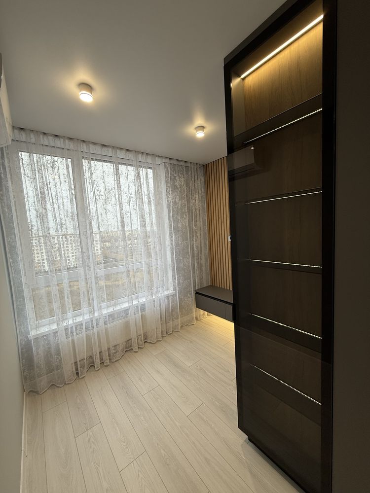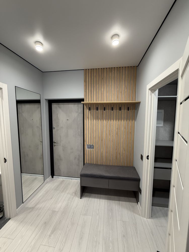 Квартира щойно після дизайнерського ремонту, виконаного з якісних матеріалів. У ній ще ніхто не проживав. Простора кухня площею 18 м² стане улюбленим місцем для зустрічей і щоденного комфорту. Підлога — ламінат, санвузол оздоблений плиткою, встановлена ванна. Є окрема гардеробна, що додає зручності в організації простору.