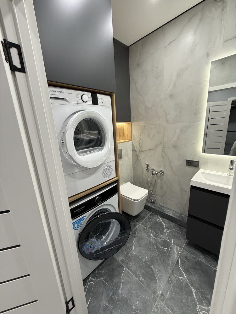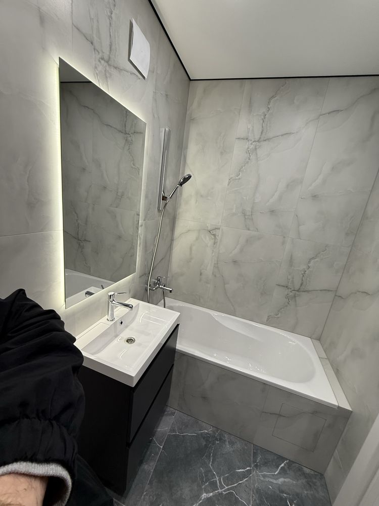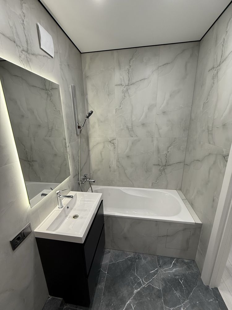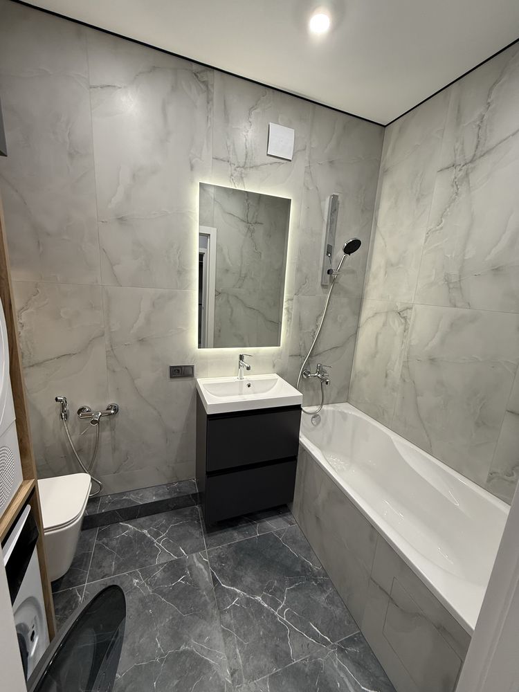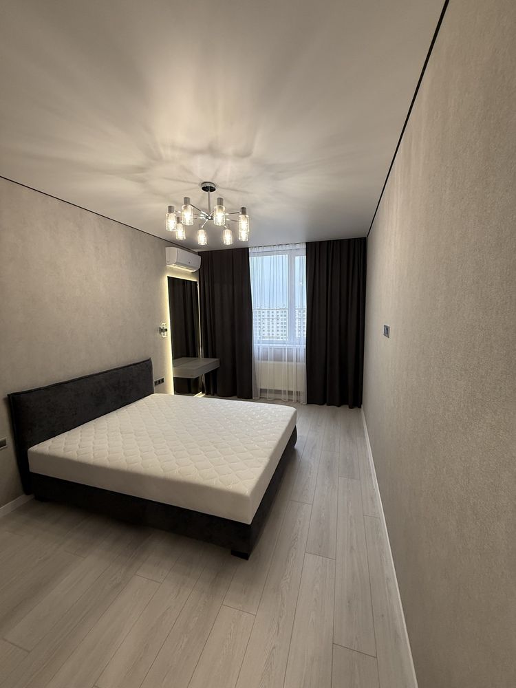 Квартира щойно після дизайнерського ремонту, виконаного з якісних матеріалів. У ній ще ніхто не проживав. Простора кухня площею 18 м² стане улюбленим місцем для зустрічей і щоденного комфорту. Підлога — ламінат, санвузол оздоблений плиткою, встановлена ванна. Є окрема гардеробна, що додає зручності в організації простору.