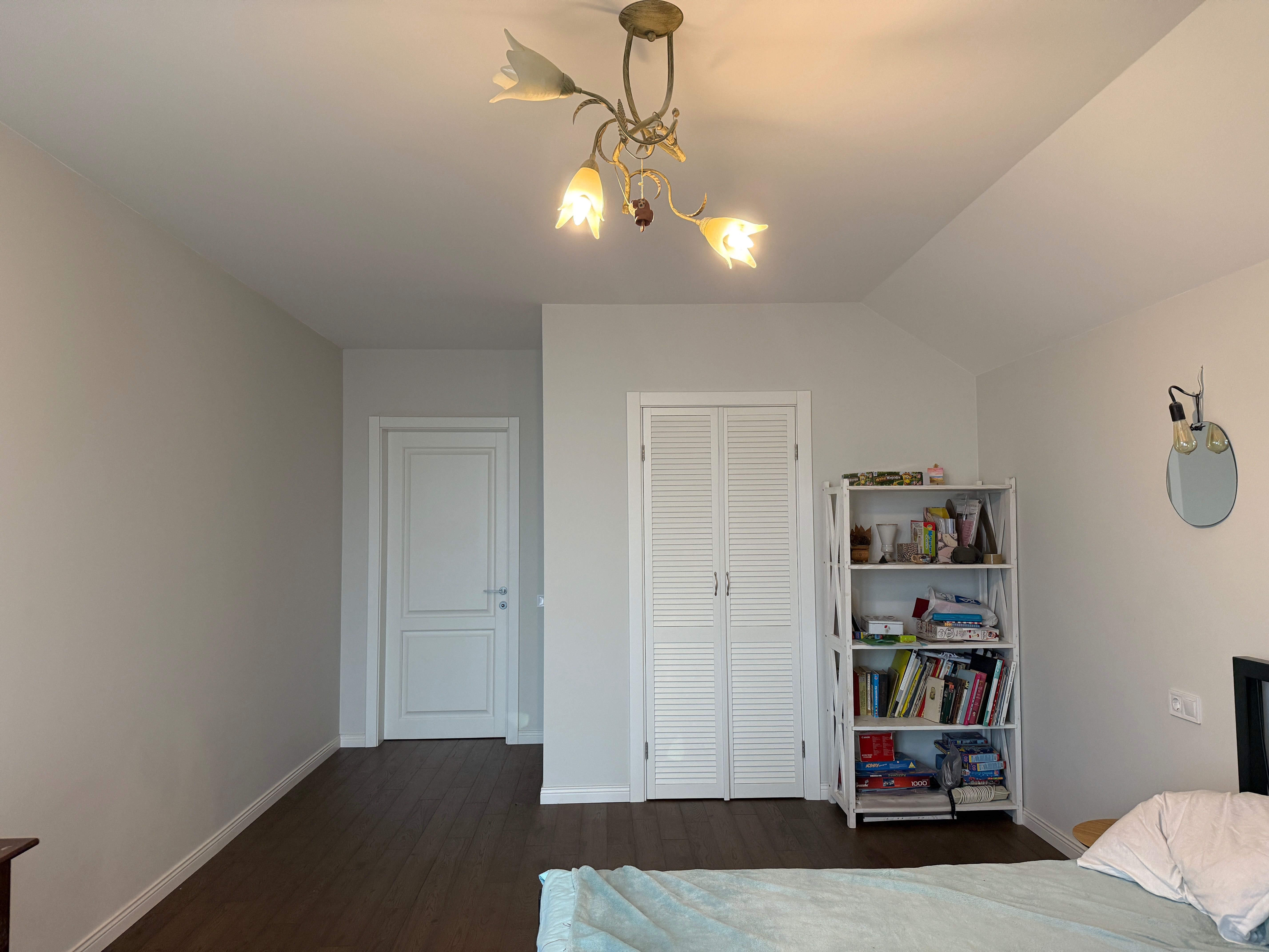 У вітальні — два розкладних дивани, у спальні — велике двоспальне ліжко з ортопедичним матрацом, шафа-купе. Санвузол — повноцінний, з ванною.
