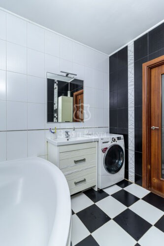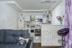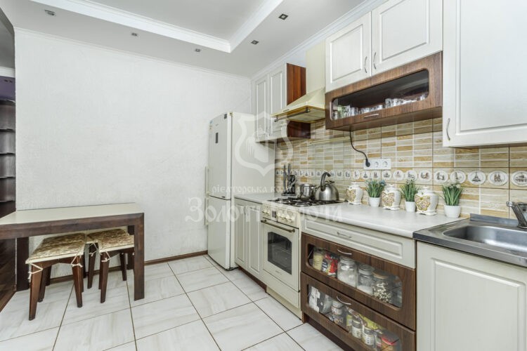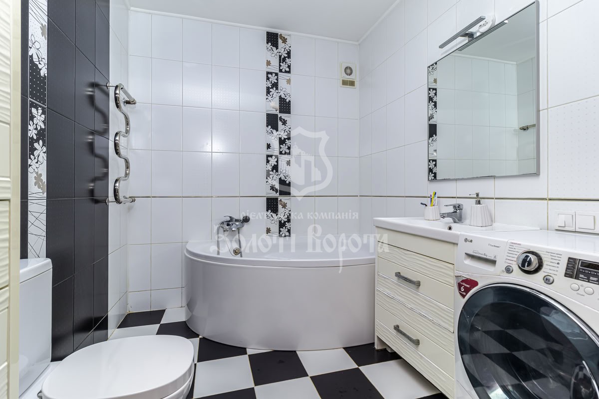 Простір облаштовано з урахуванням щоденних потреб: суміжний санвузол, тепла підлога, що працює від горизонтального опалення, електрична духовка, посудомийна машина на 80 л, кондиціонер з функцією охолодження, розкладний диван, стіл. Усі меблі та техніка залишаються.