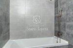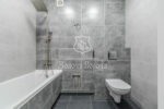Санвузол суміщений, оздоблений сучасним кахлем, підлога з підігрівом. У квартирі — ламінат, натяжна матова стеля, встановлені сучасні світильники.
