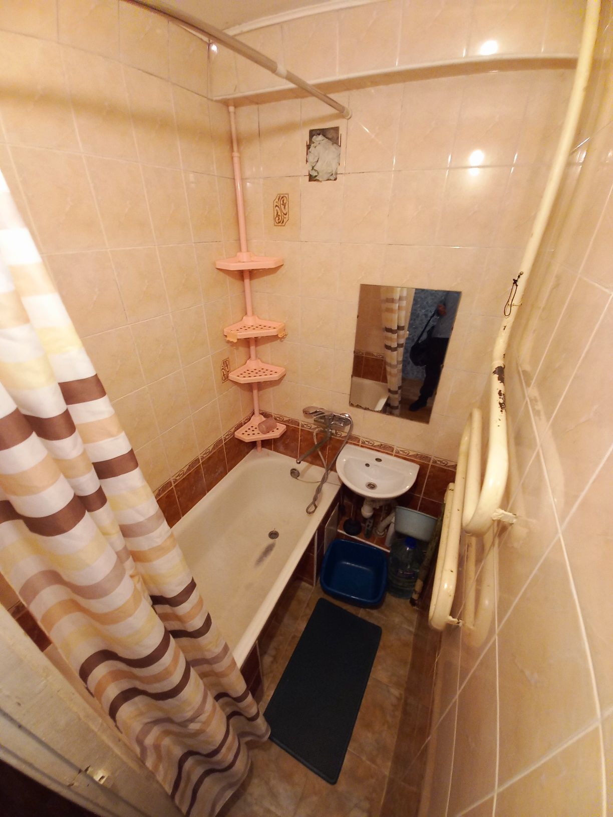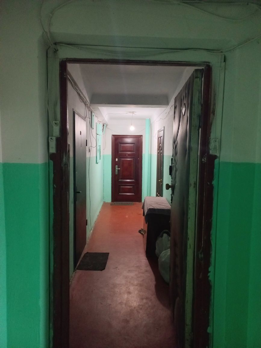 Квартира перебуває у задовільному стані. На підлозі частково постелено лінолеум та паркет, на стінах — шпалери. Санвузол окремий, обладнаний ванною. Житло має кутову лоджію/балкон.