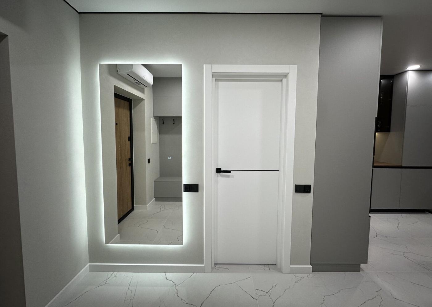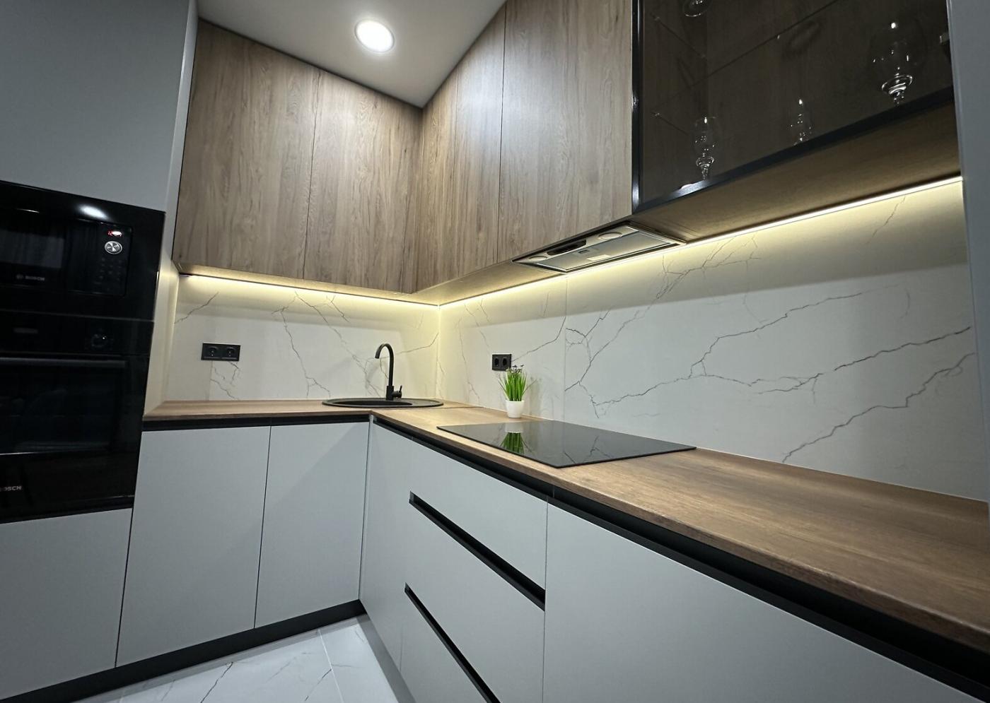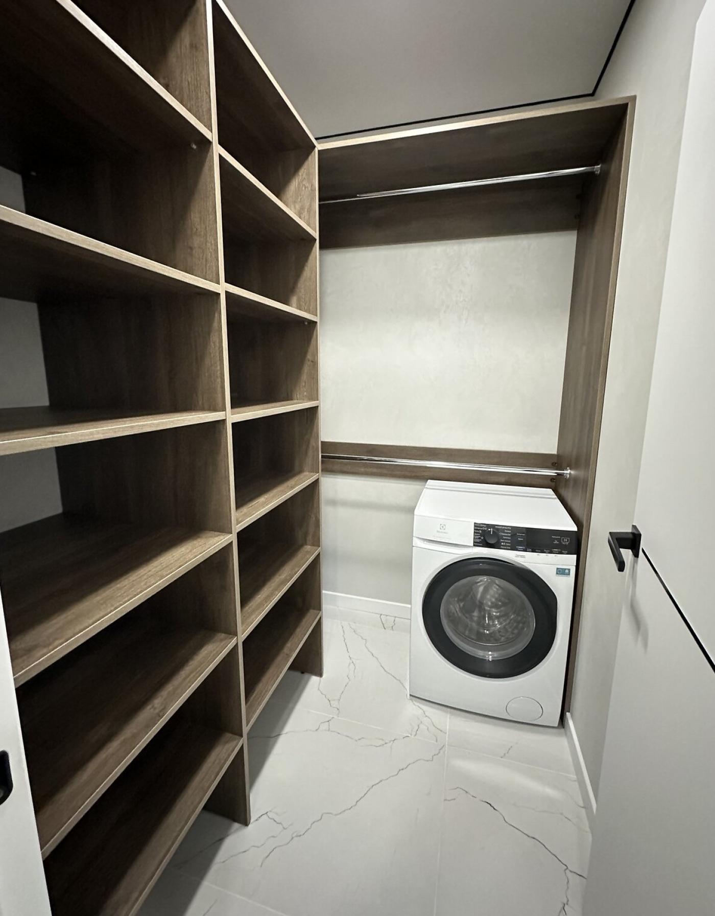 Усі меблі виготовлені на замовлення, ремонт виконаний у світлій кольоровій гамі з використанням якісних матеріалів.